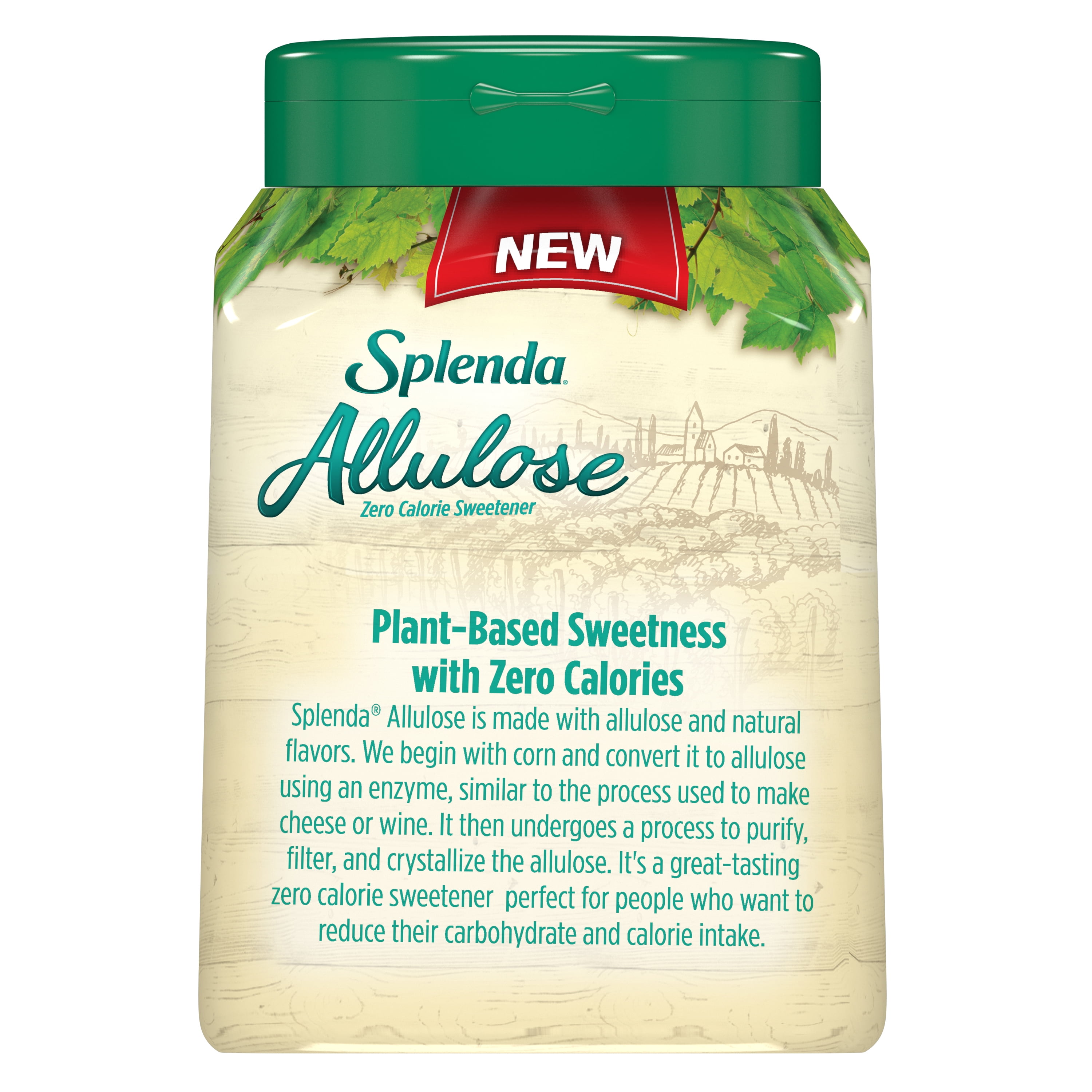 You’ll love the sweet taste of Splenda Allulose sweeteners. Splenda Allulose tastes, measures, and bakes just like sugar! It gets its unique sweetness from Allulose and natural flavors. We begin with corn and convert it to Allulose using an enzyme, similar to the process used to make cheese or wine. It then undergoes a process to purify, filter, and crystalize the Allulose. Splenda Allulose is a great option to cut sugar and reduce calories without losing any of the sweetness you crave.