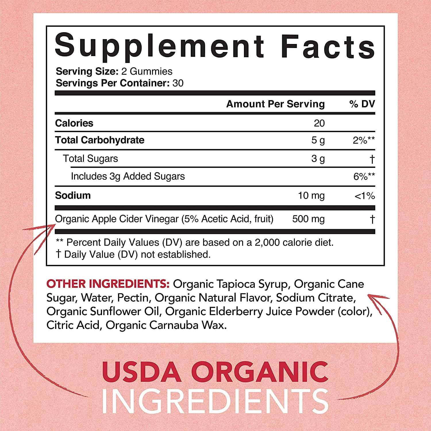 - Each serving contains 500mg of Organic Apple Cider Vinegar with the Mother.