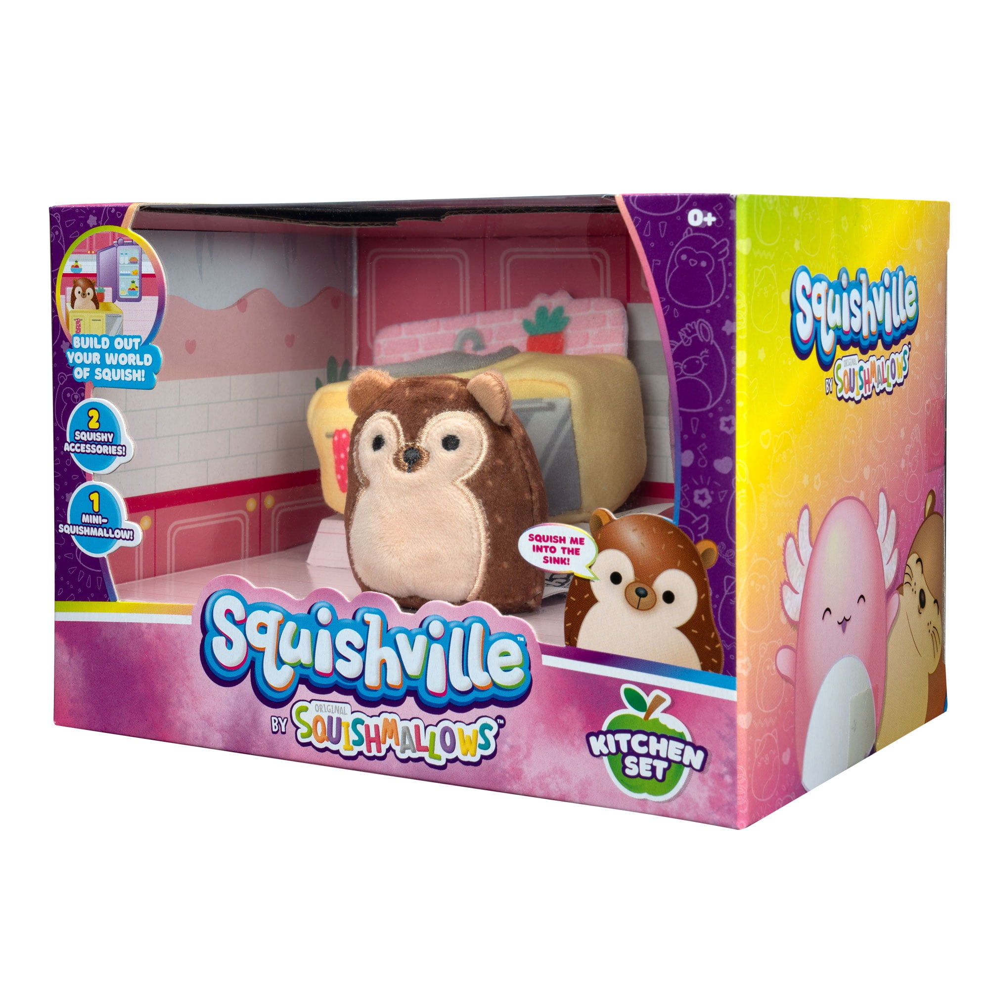 Hop into the Squishville plush toy world with the Mini Plush Kitchen Accessory Set. This adorably squishy accessory set features your favorite Squishmallows plush characters in a mini 2-inch size. Squeeze your Mini-Squishmallows plush in and out of hilarious places in this adorable kitchen. The plush Squishville toy world is made with super-soft marshmallowy filling making it the coziest place on earth. Customize and decorate your Squishville plush toy world with the plush kitchen. This playset comes with 2 accessories, a fridge and sink. Add Hans, Squishmallow plush favorite to your world of squish in its new 2-inch size. With vehicles, playsets, and your favorite Squishmallow plush characters, the Squishville plush world is bursting with squish-ibilities.