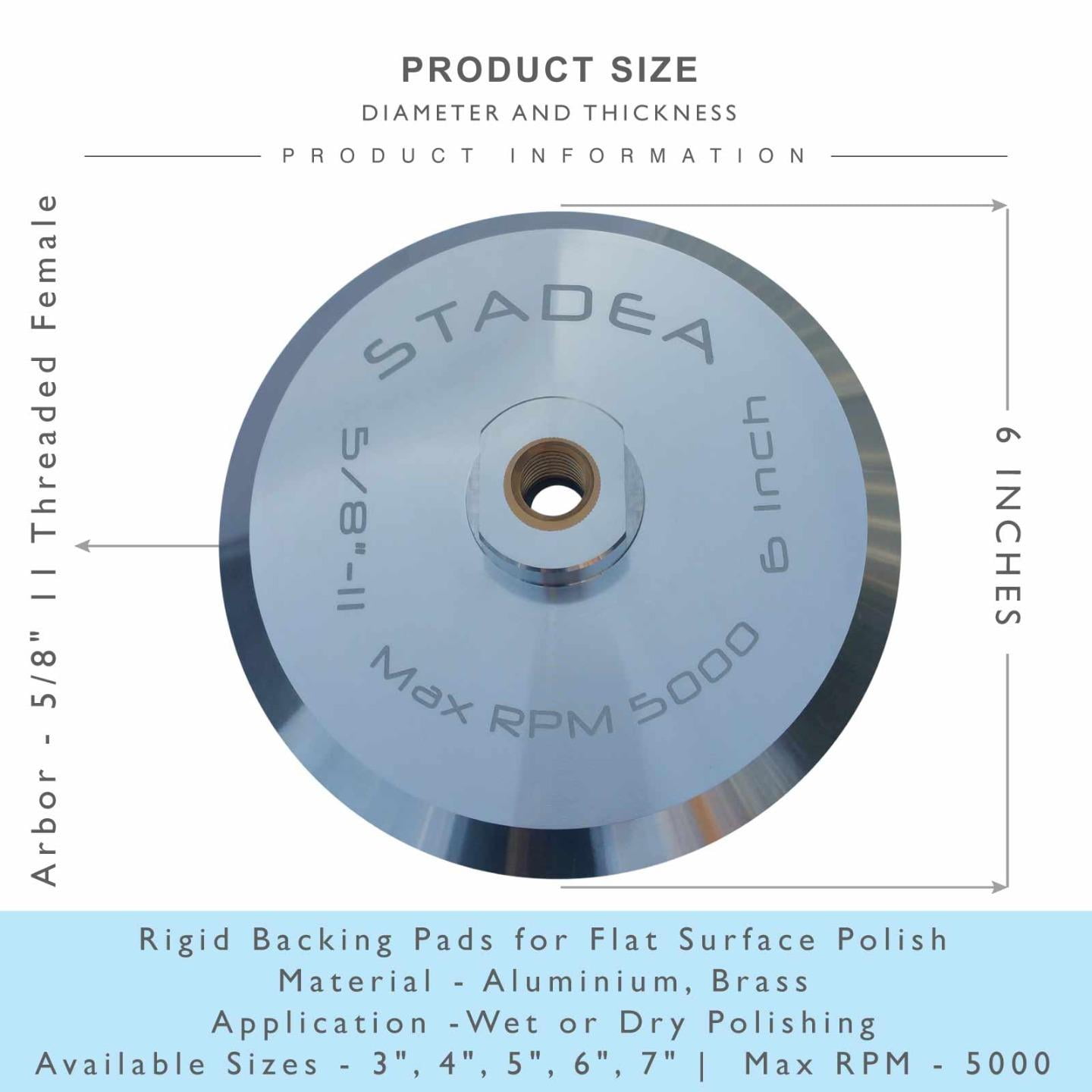 Stadea 6 Inch Hook and Loop Backing Pad With Rigid Aluminium Backing, 5/8′ 11 Brass Arbor