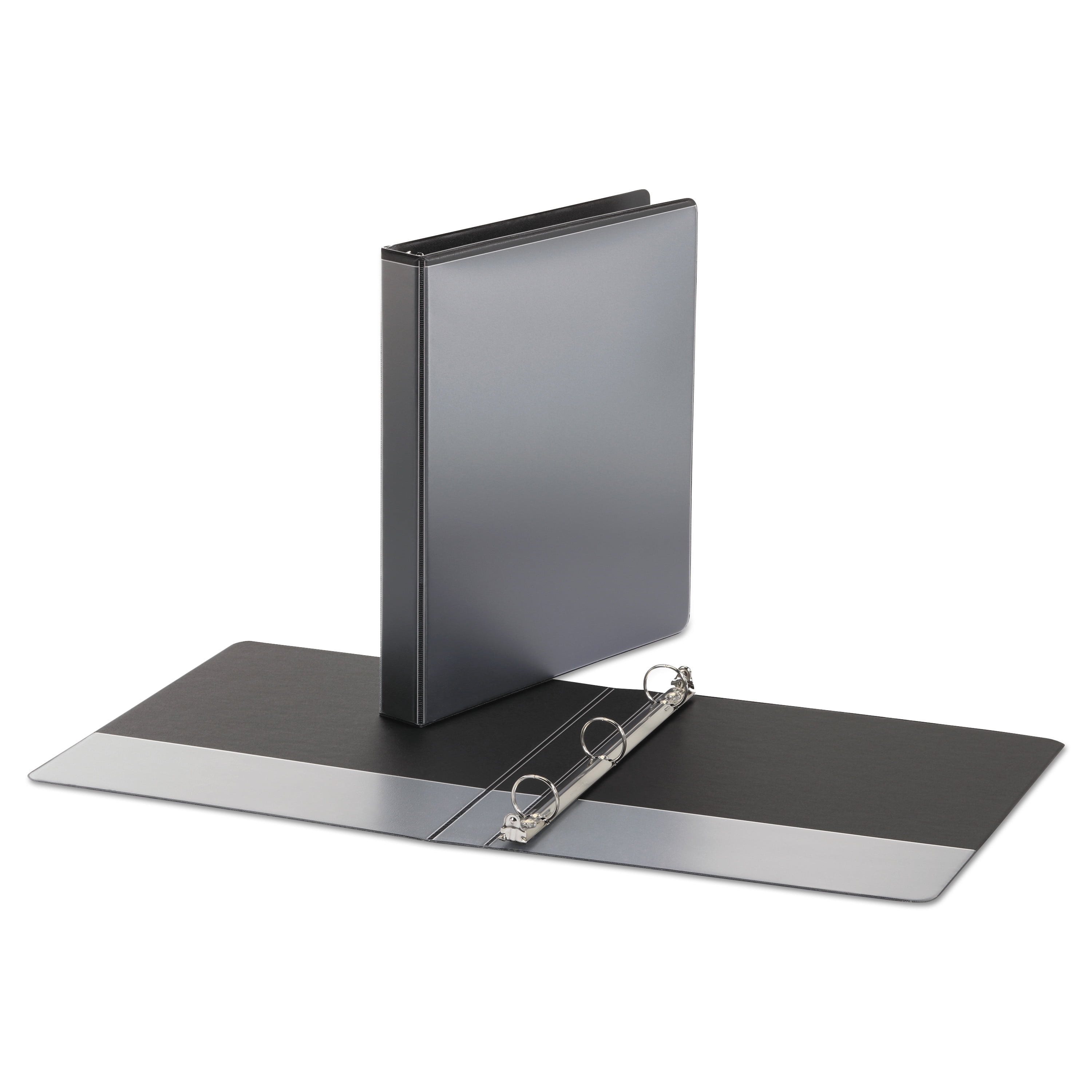 - 1 1/2 inch binder. Durable covers are made of plastic with nonstick surface. PVC free – made from plastics using fewer harmful chemicals and with reduced emissions during manufacturing.