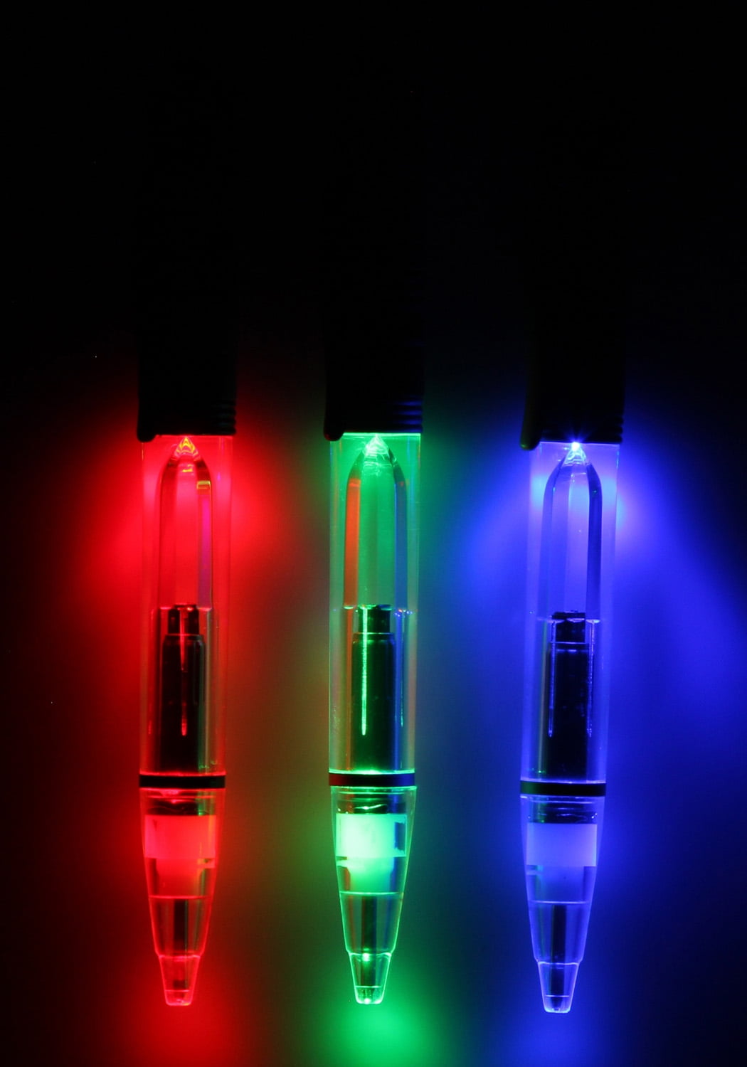 Star Wars Light-Up Refillable Ink Lightsaber Pens 3 PC Set This is an officially licensed Star Wars pen set, Guaranteed!! Star Wars is one of the all-time great adventure sagas to ever hit the movie screen! The original 3 Star Wars IV: A New Hope, Star Wars V: Empire Strikes Back, And Star Wars VI: Return of the Jedi were a sight to behold and still wow us to this day! These Lightsaber pens are a must-have for any true Star Wars fan! This set features 3 designs of famous lightsabers from the show. Darth Vader’s dread inspiring Red Lightsaber, Obi-Wan’s Blue Lightsaber, and Luke Skywalkers Green Lightsaber. All three pens have a light-up function with an easy click -on and off top button. The ballpoint pens themselves twist at the bottom for easy use. They have black ink that is refillable.