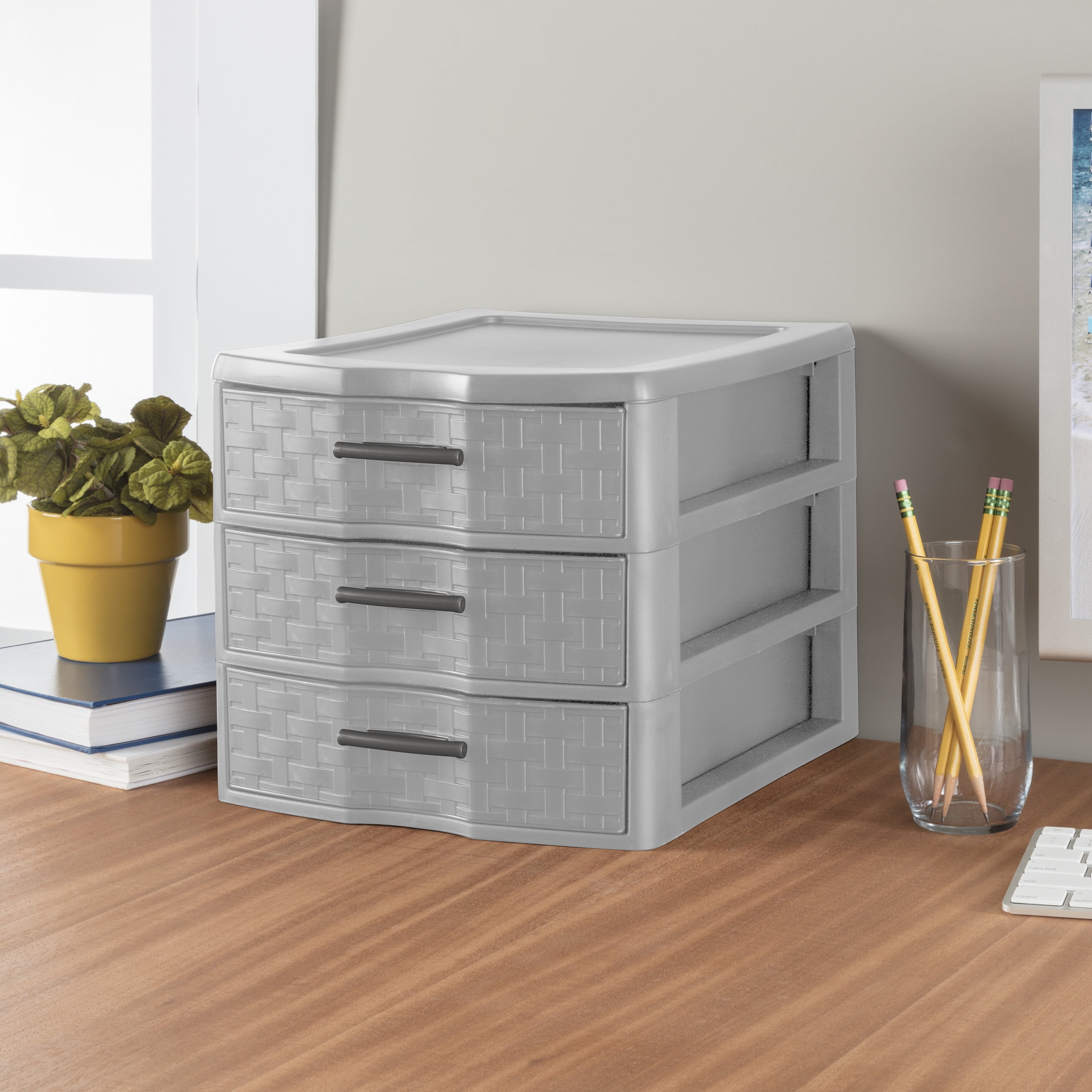 Sterilite Adult Plastic Medium Weave 3 Drawer Unit Cement: