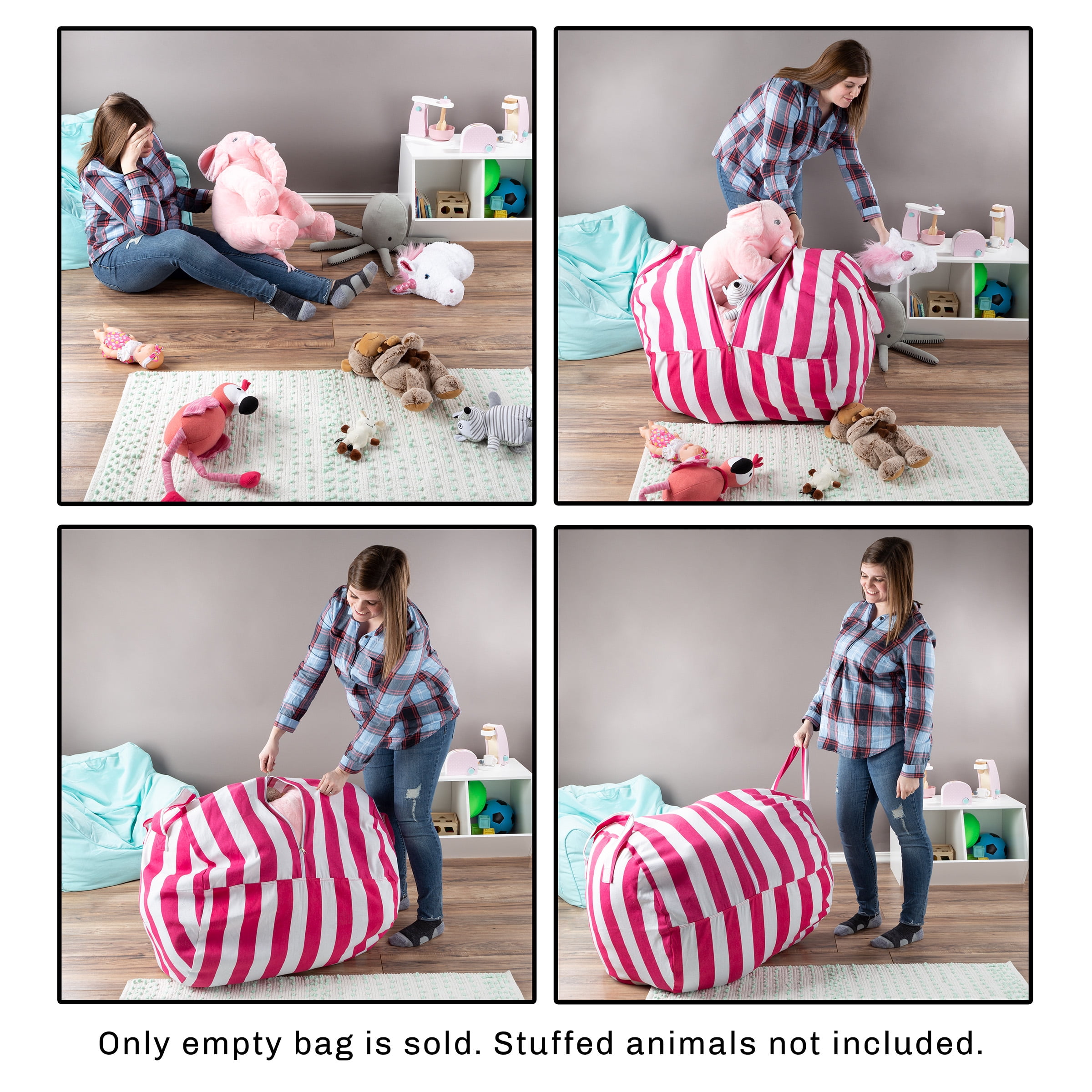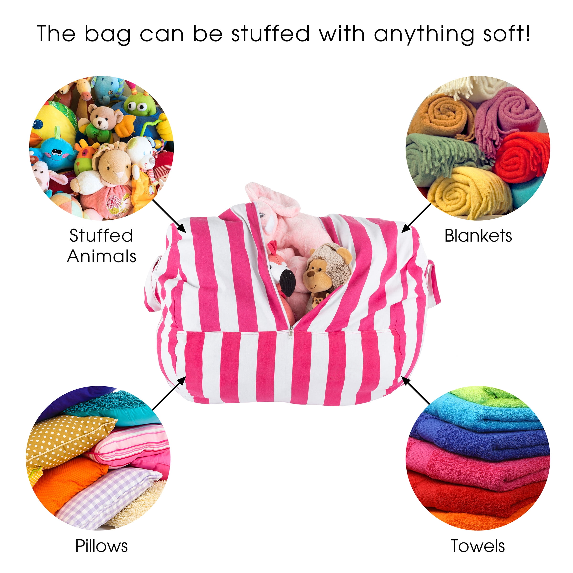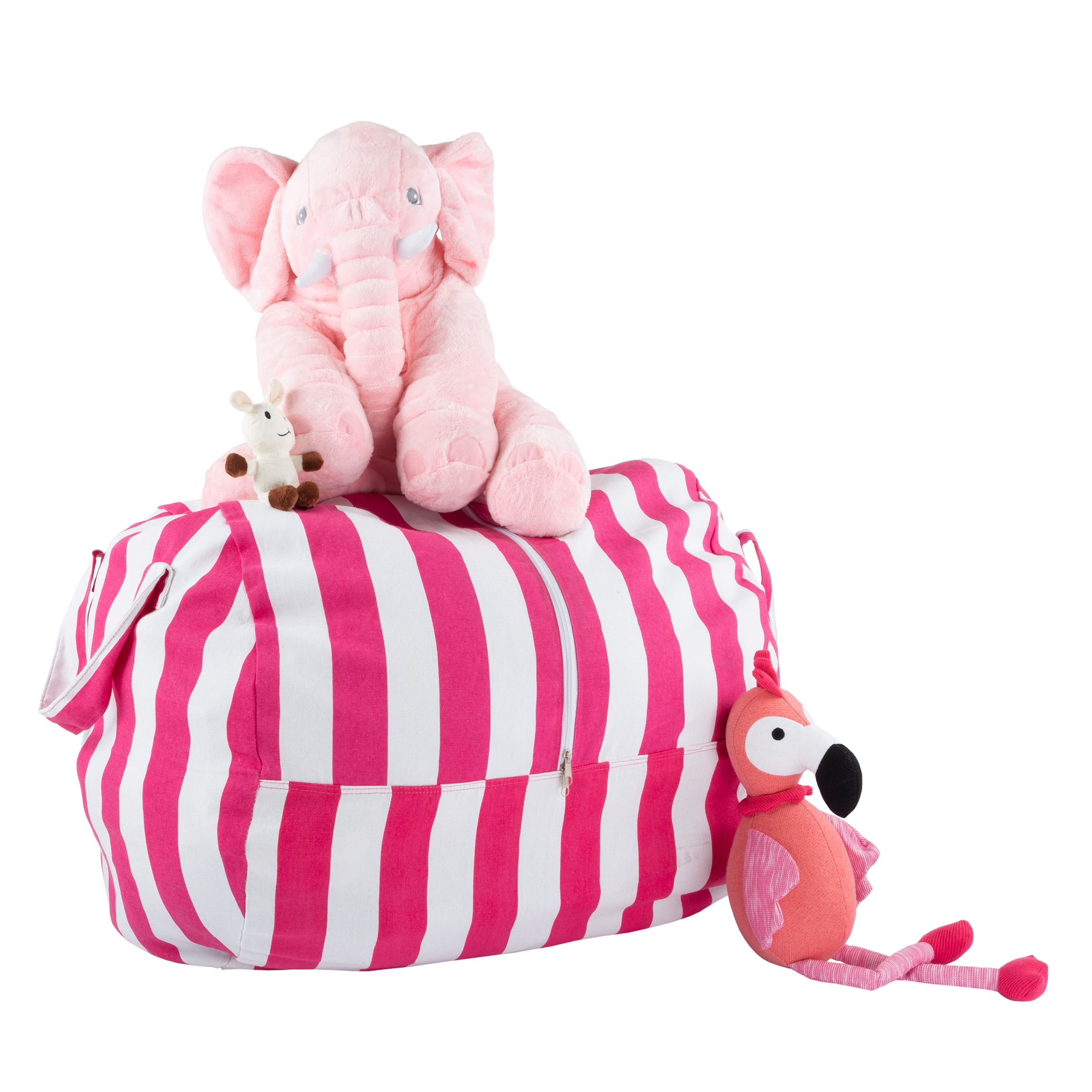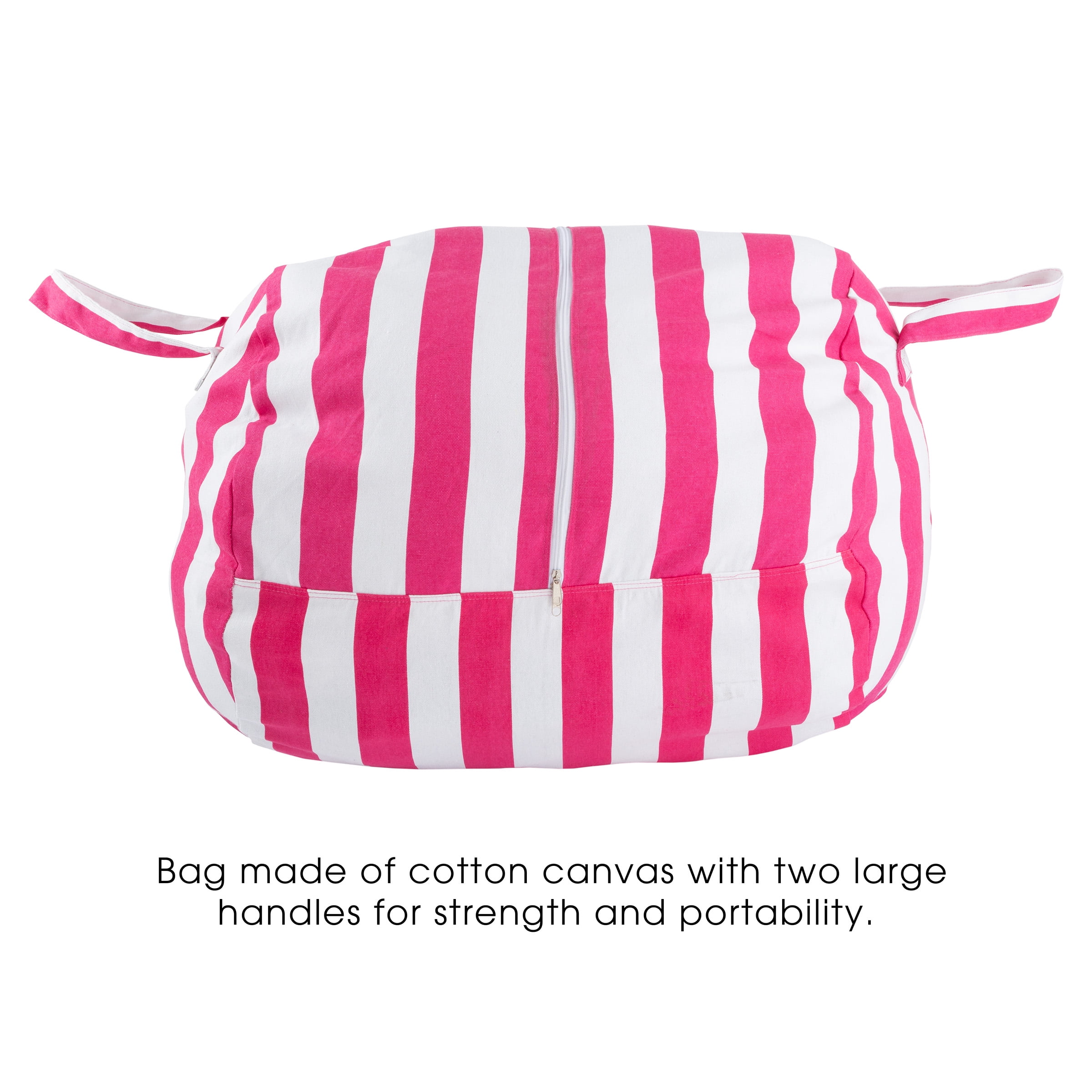 - PRODUCT DETAILS– Materials: Cotton Canvas. Dimensions: (L)35";x (W)25";x (H)24";. Color: Pink and White Stripes. Bag Only, Stuffed Animals not Included.