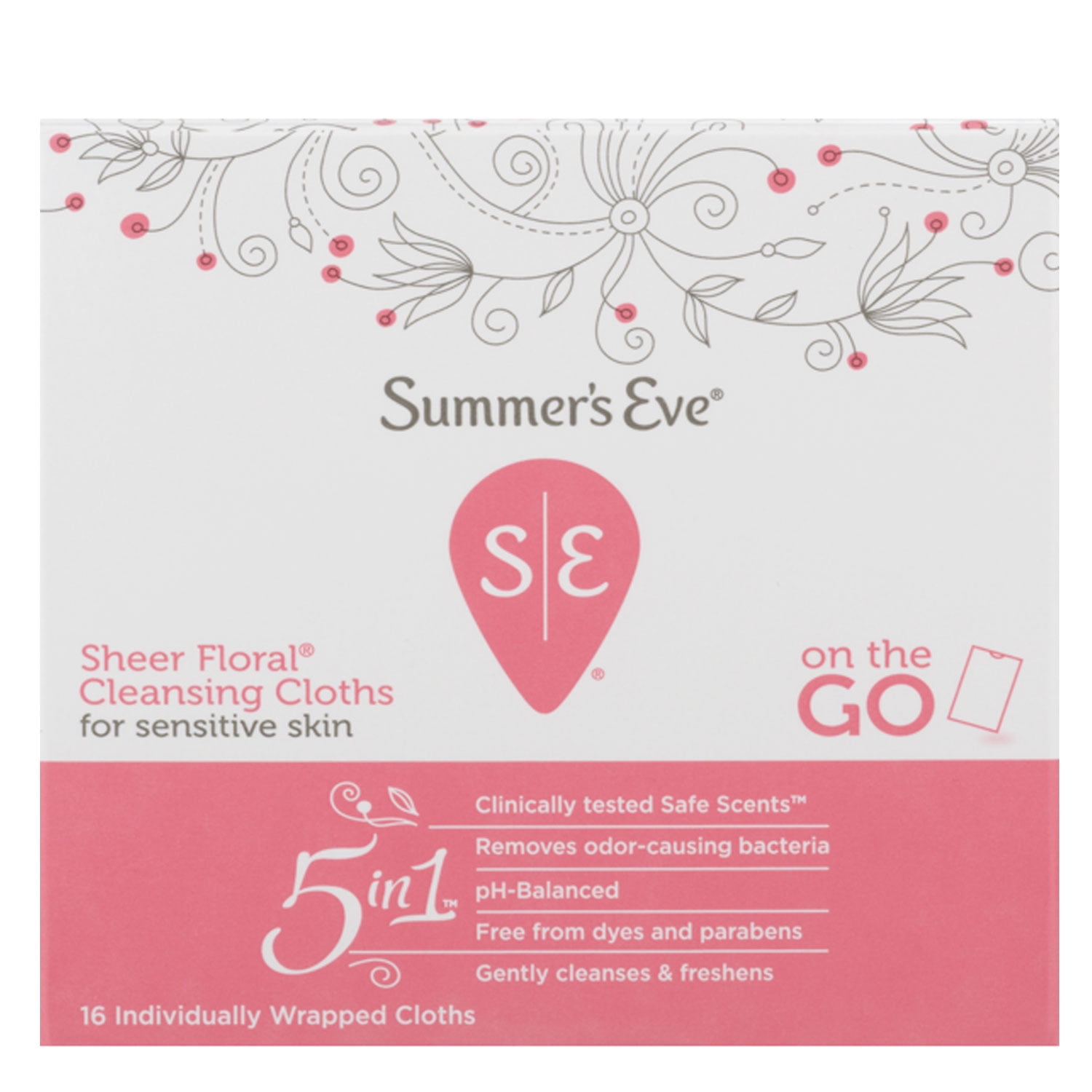 Summer’s Eve [Sheer Floral] Cleansing Cloths for Sensitive Skin, 16 cloths