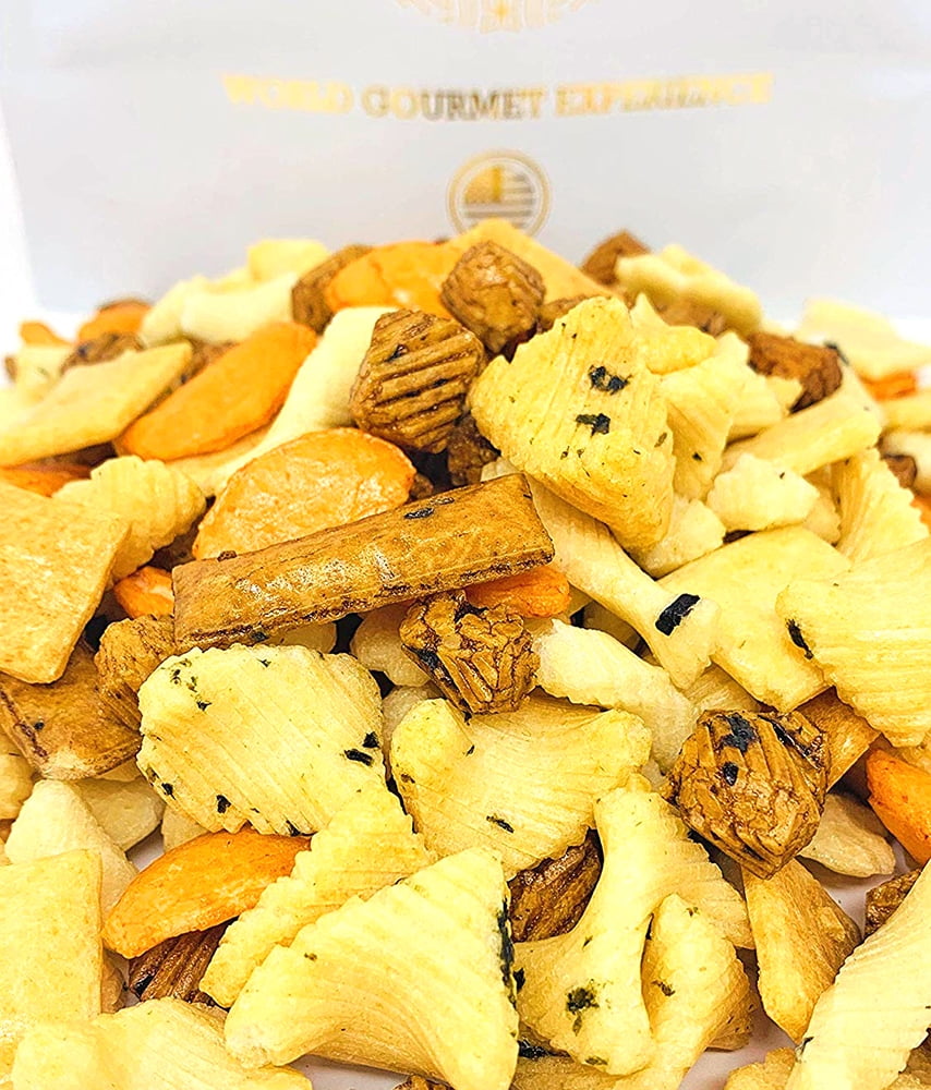 Oriental Rice mix is a crunchy snack that has an assortment of flavors, shapes and textures. Start here with this Asian rice cracker snack mix, an appealing tangle of soy, chili, sesame and a subtle hint of sweetness. Nearly all your flavor bases are covered in this colorful, delightful rice cracker mix! Bring them to the office or put them out the next time the gang comes over for a game. Also known as Japanese Rice Crackers.