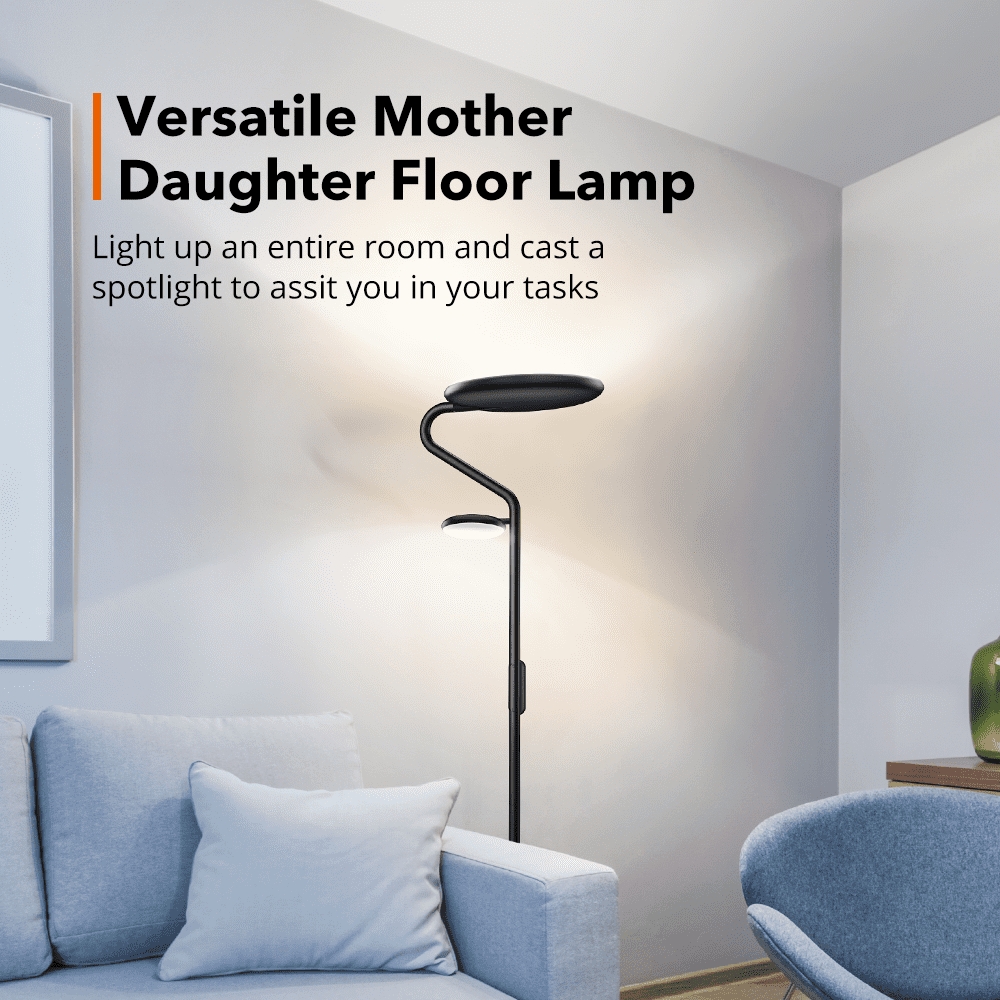 - 【Versatile Mother Daughter Lamp (can work separately/together)】 32W main lamp with longer diameter (11inches) can shine toward the ceiling to diffuse better and softer light into a whole room, 9W side lamp lends a focused light for reading or crafts; Two lamps can work up to 36W in total at the same time, providing super bright lighting and more productivity.