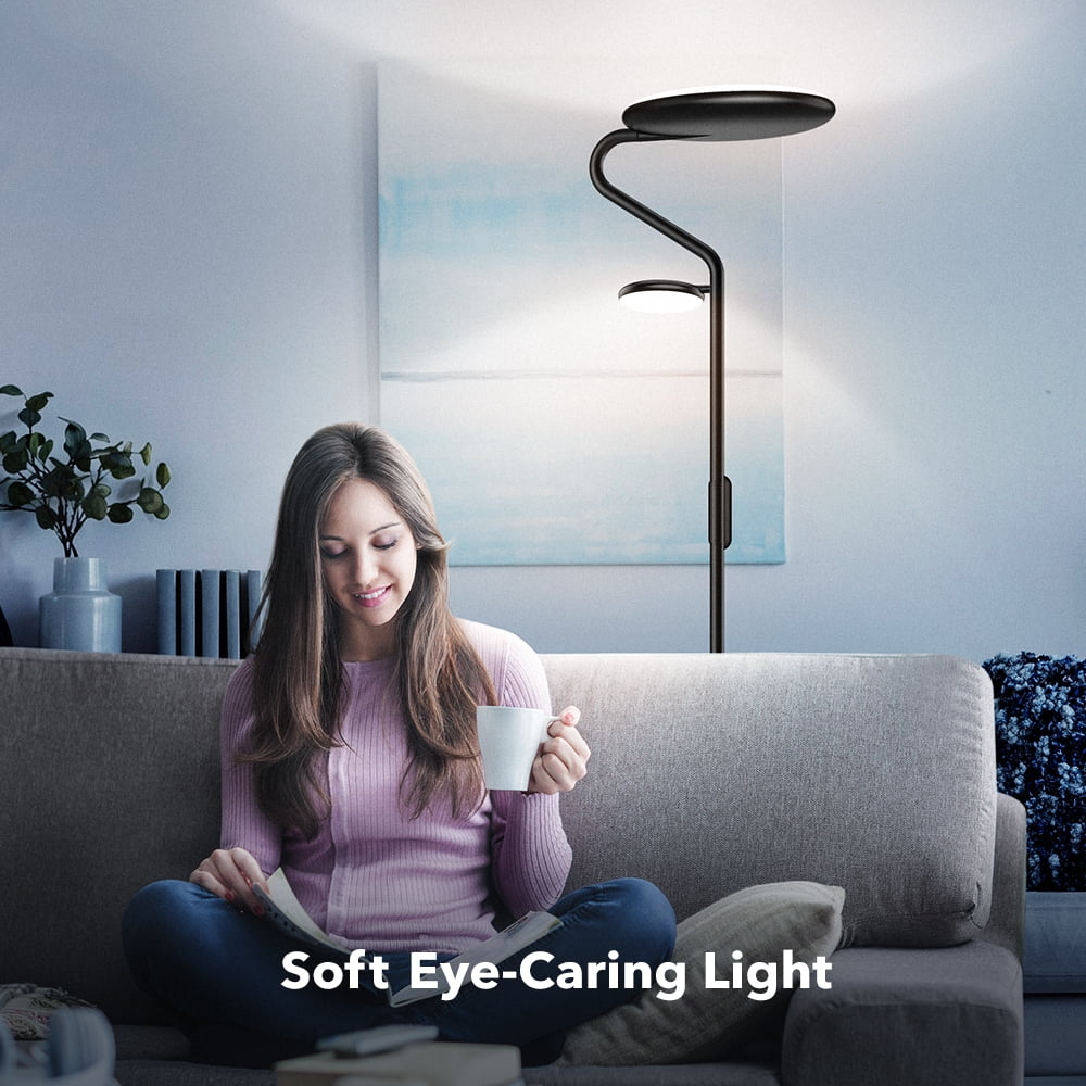 TaoTronics LED Floor Lamp, Metal Mother Daughter Floor Lamp with Reading Light, 36W 4 Brightness Levels & 4 Color Temperatures Adjustable with Remote & Touch Control for Living Room Bedroom