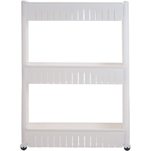 Organize your pantry or laundry room while saving valuable pantry space with the help of this 3-Tier Slim Slide-Out Pantry on Rollers. It is constructed of sturdy and durable materials and features rugged PVC wheels for ease of transporting. These pull-out pantry shelves are specially designed for smaller spaces, such as next to a refrigerator or between a washer and dryer and are ideal for use in a kitchen, bathroom, nursery and more. They are versatile and will easily hold chips, soda, laundry detergent, cleaning supplies and much more. You can even use it in closets, bathrooms, garages and at the office to make life more simple and less cluttered keeping your items in place and organized to easily locate what you need when you need it. This 3-Tier Slim Slide-Out Pantry on Rollers is ideal for canned foods, spices, laundry supplies, home and bath supplies, kids’ toys and more while easily fitting into narrow spaces in any room in your home.Three-Tier Slim Slide-Out Pantry on Rollers, 5" Wide: