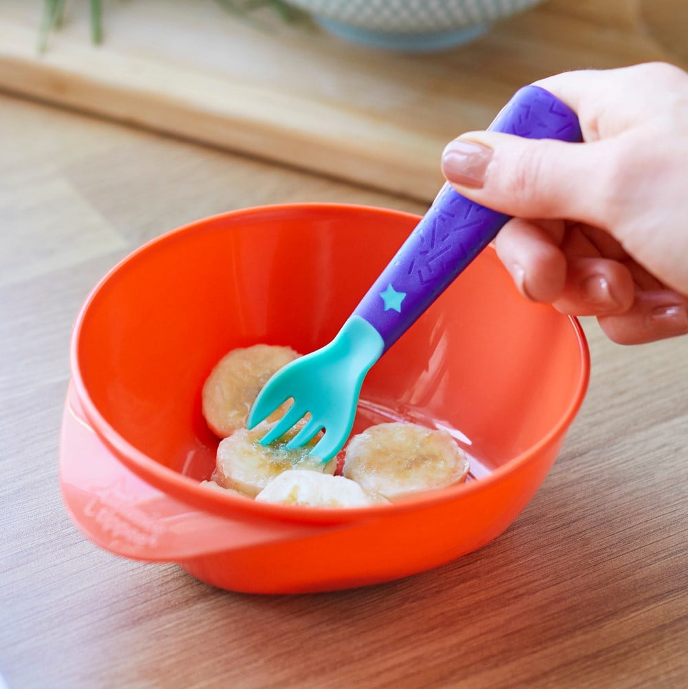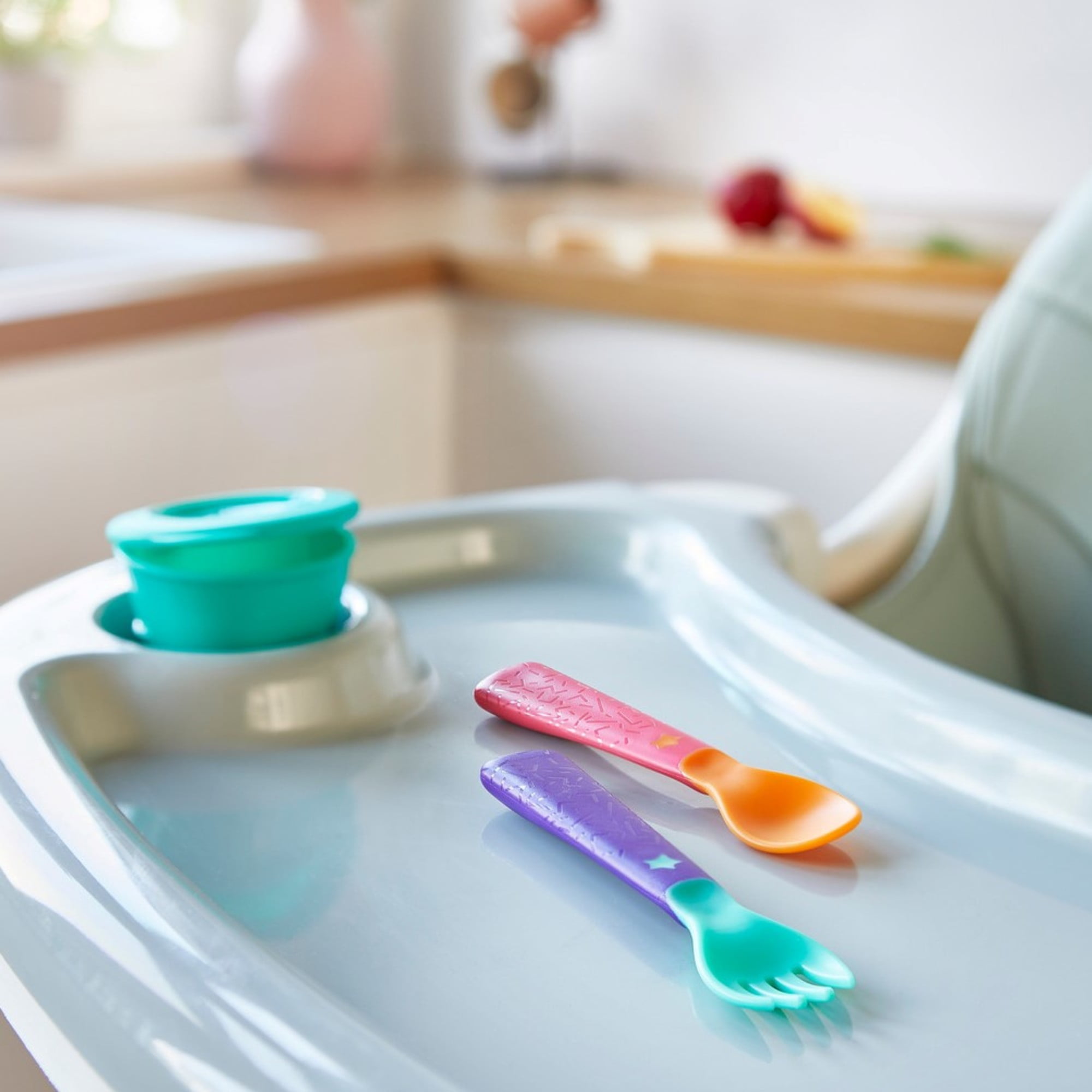 When your little one is ready to learn, there’s no stopping them! That’s why our Easigrip™ Self-Feeding Fork and Spoon set is designed to help babies scoop, stab, grip and feed themselves confidently and safely. The chunky handles are perfect for little hands, and the spoon is wide and deep to make scooping easier and help more food stay on. The fork also has rounded edges to protect toddlers’ little mouths and gums.