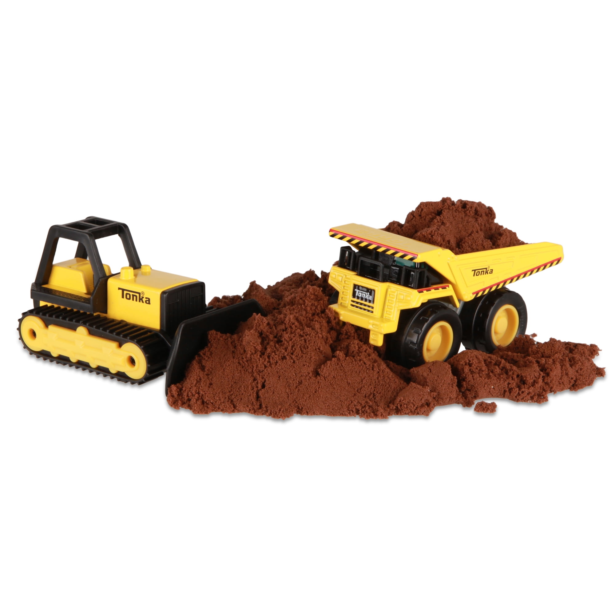 Introducing the all-new Tonka Mini Movers! Built "Tonka Tough", this set includes two diecast vehicles and Tonka Tough Dirt, a no-mess sand compound that mimics real construction site conditions! It’s a whole new way to play with all your favorite Tonka vehicles! Appropriate for ages 3 and up!