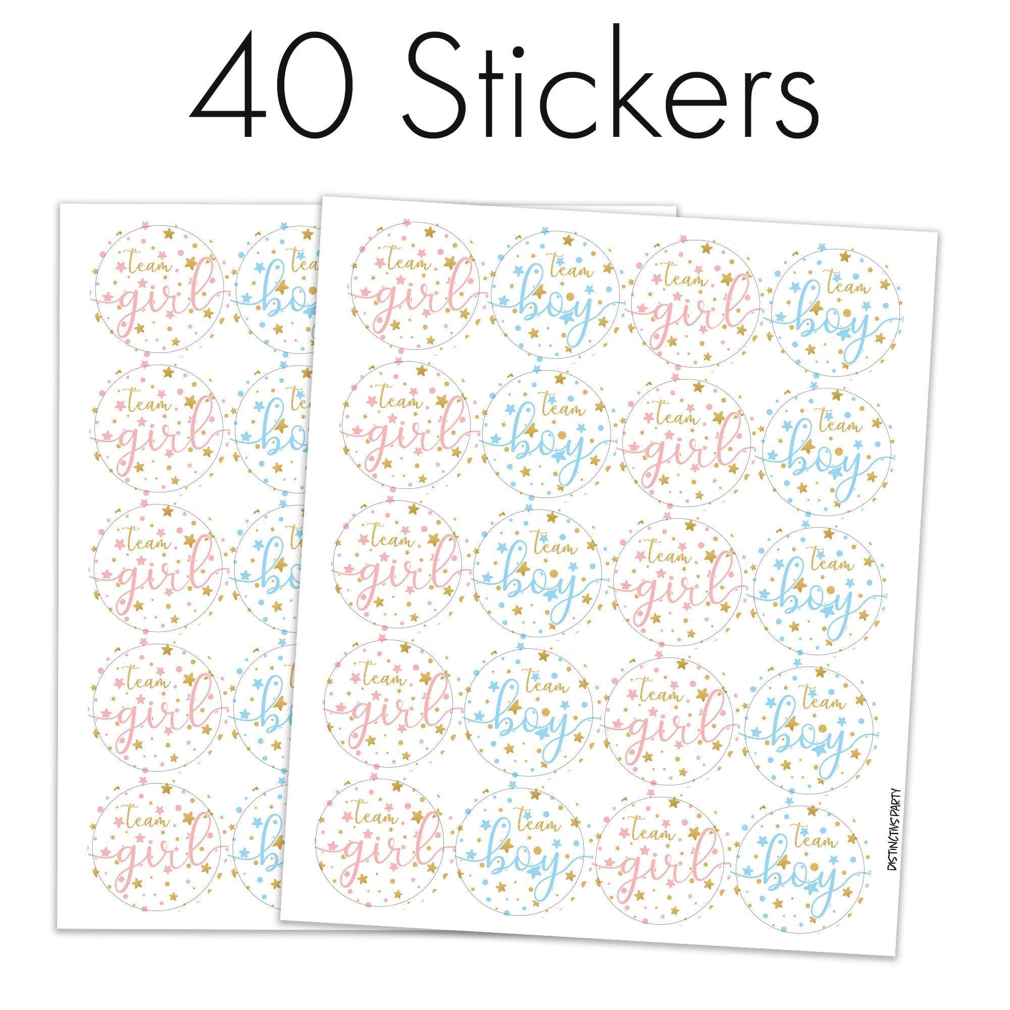 Twinkle Twinkle Little Star Gender Reveal Party – Team Boy or Girl – 40 Stickers – Pink or Blue – Distinctivs