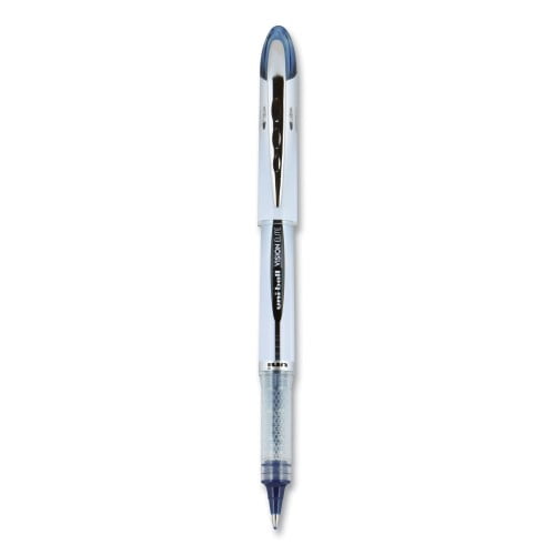 Capped rollerball pens deliver smooth flowing ink for consistent, vibrant writing.Produces an outstanding ink lay-down for pronounced lettering and vivid drawings.Uni-Flow Ink System ensures a consistent, delightfully fluid writing experience.Fade-proof liquid roller pens have uni Super Ink that makes them water and fraud-resistant.Airplane-safe ink prevents leakage even when cabin pressure changes.uni-ball-1PK VISION ELITE Roller Ball Pen, Stick, Bold 0.8 mm, Blue-Black Ink, White/Blue Barrel