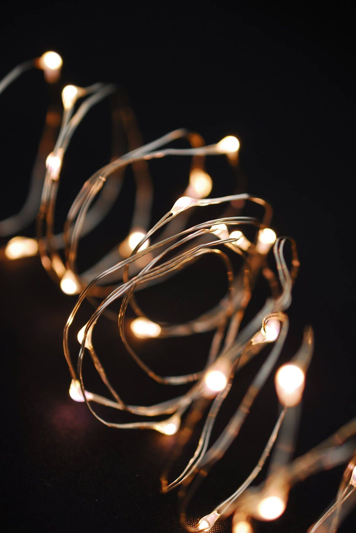 You know how you have always wanted to be able to make a strand of lights go exactly where you want them to. Well, with the Copper Wire Battery String Lights, in Warm White, you can do exactly that! With about 6 and a half feet in each of the two strands, you’ll have about 14 feet of copper wiring to use at will, all the while remaining cool to the touch. Put a little light in a corner to create a cozy reading area, use as a romantic and artistic centerpiece at dinner-for-two, or get a whole bunch to add a little festive lighting to any party or celebration. And these great LED String Lights are perfect for dorm room Christmas Trees, too. Twist them there. Wrap them there. Bend it like… well, you know who. Just imagine the possibilities with the Copper Wire Battery String Lights. So cool… and on purpose, too.