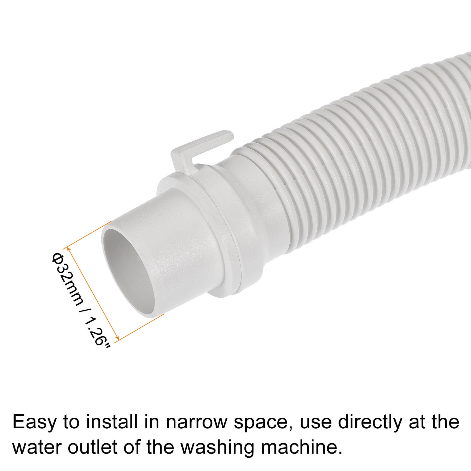 Please confirm the right size before ordering.Uxcell Washing Machine Drain Hose, 31mm Inner Dia 1.24M Length Pipe Extension White