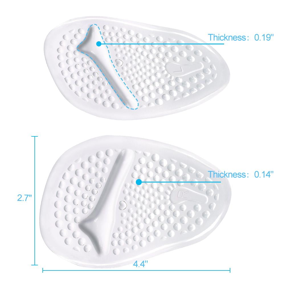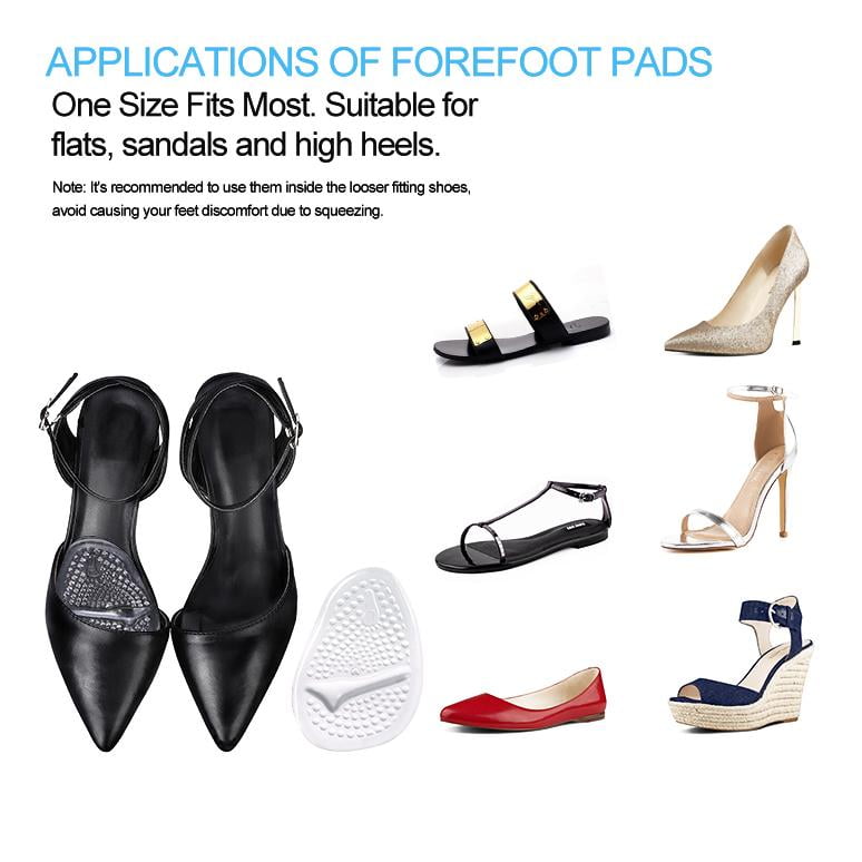 - EXCELLENT ARTIFICIAL FAT PAD: The super soft gel foot pads help to reduce the pressure on the toes and metatarsal, have a comfortable little ridge that helps hold the ball of your foot in place and prevents your foot from slipping forward.