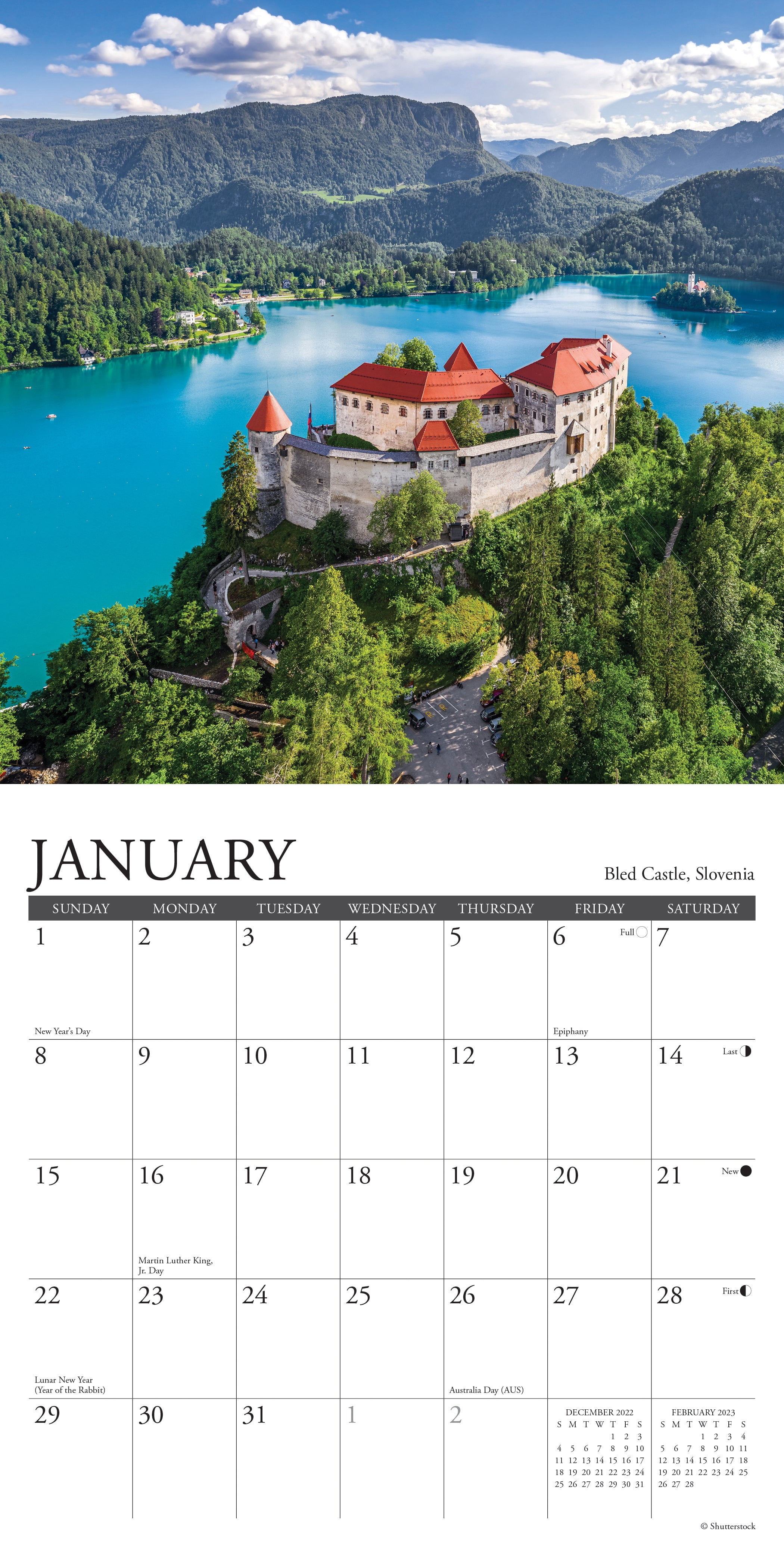 Surreal, yet vivid, these stunning images of wonder and mystery will make even the most ardent homebody ache for a globe-trotting adventure. Printed with soy-based inks on FSC certified paper, this 7"x 7" wall calendar features monthly grids that offer ample room for jotting notes, along with six bonus months of July through December of 2022. Also includes moon phases (CST), standard U.S., and international holidays.