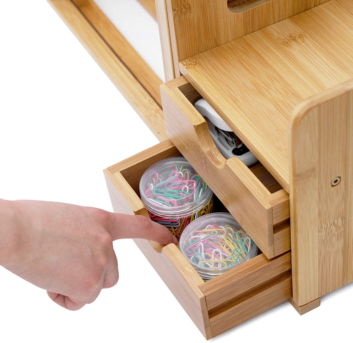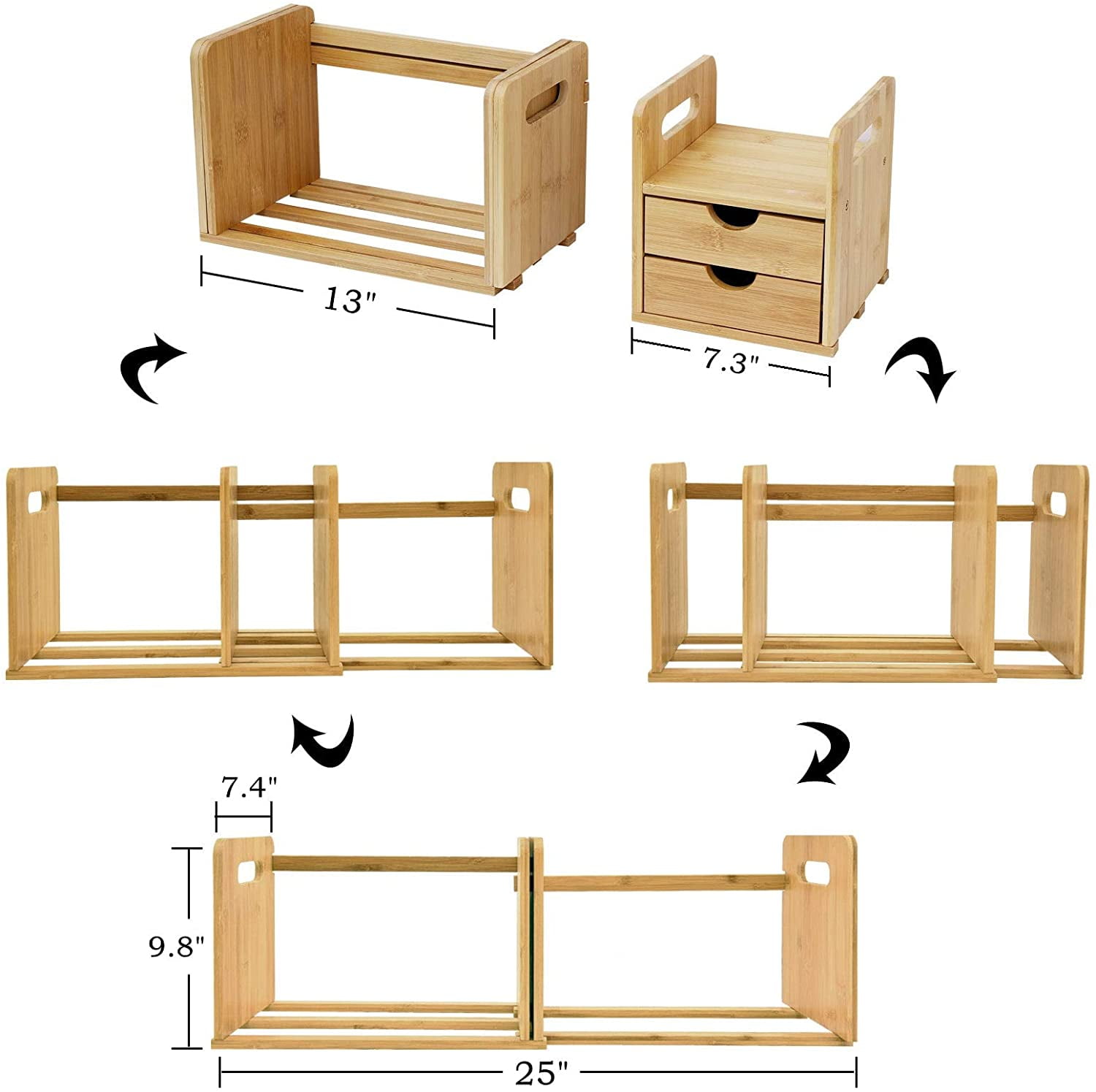 WELLAND Bamboo Desktop Bookshelf Adjustable Desk Organizer with Storage Drawers