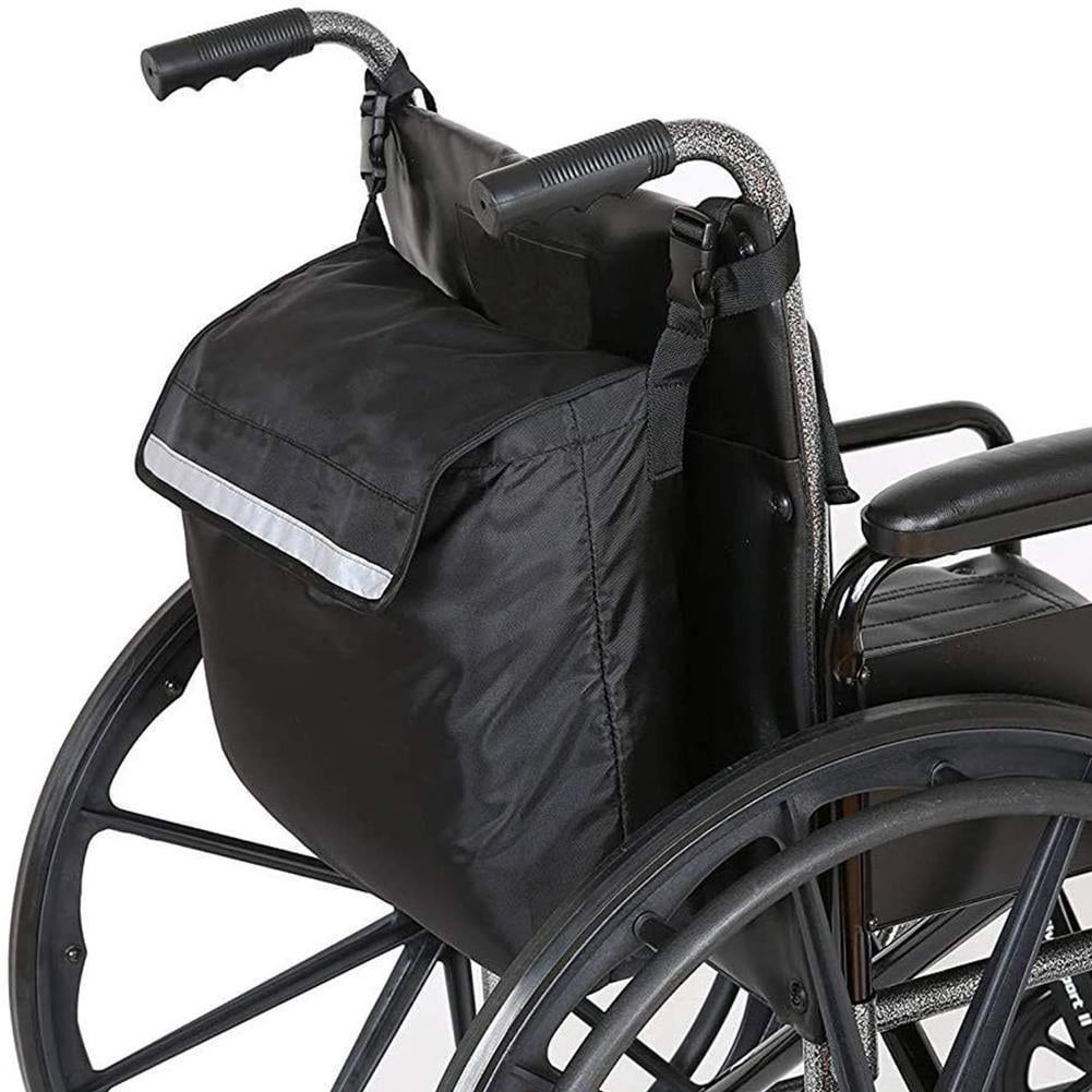 - HANDS-FREE GRAB-AND-GO BAG – Our spacious wheelchair bag provides plenty of storage for everyday life or travel. It can be used with all standard wheelchairs, bariatric wheelchairs, walkers, rollators and transport chairs. Gone are the days when your loved one had to place items on their lap or struggled to balance bags on the handles behind them ? the Wheelchair Bag safely and securely carries everything with ease.