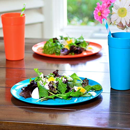 Youngever 18-Piece Plastic Kitchen Dinnerware Set, Plates, Dishes, Bowls, Cups, Service for 6 in 6 Assorted Colors