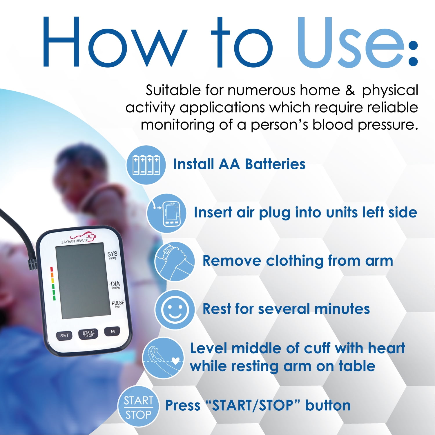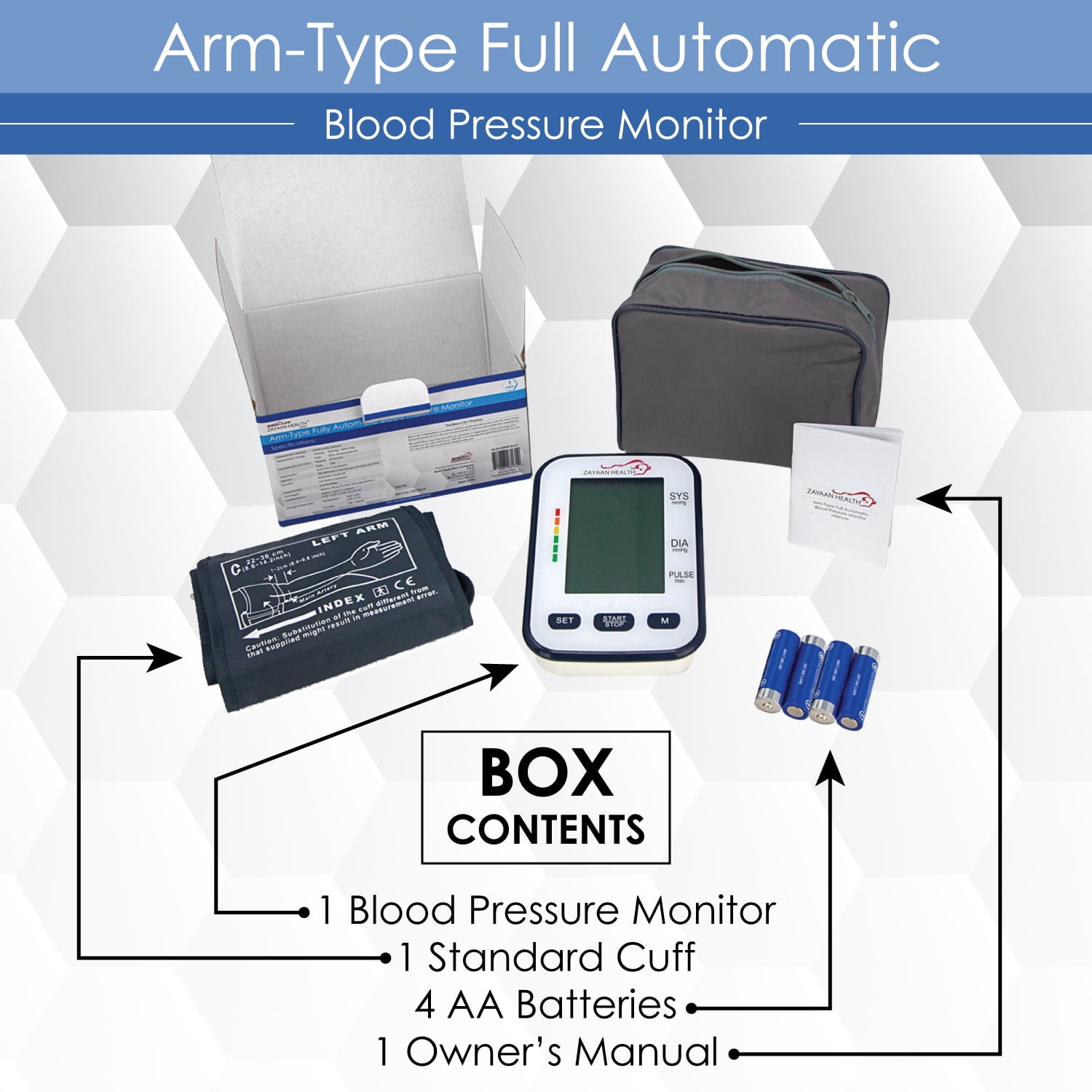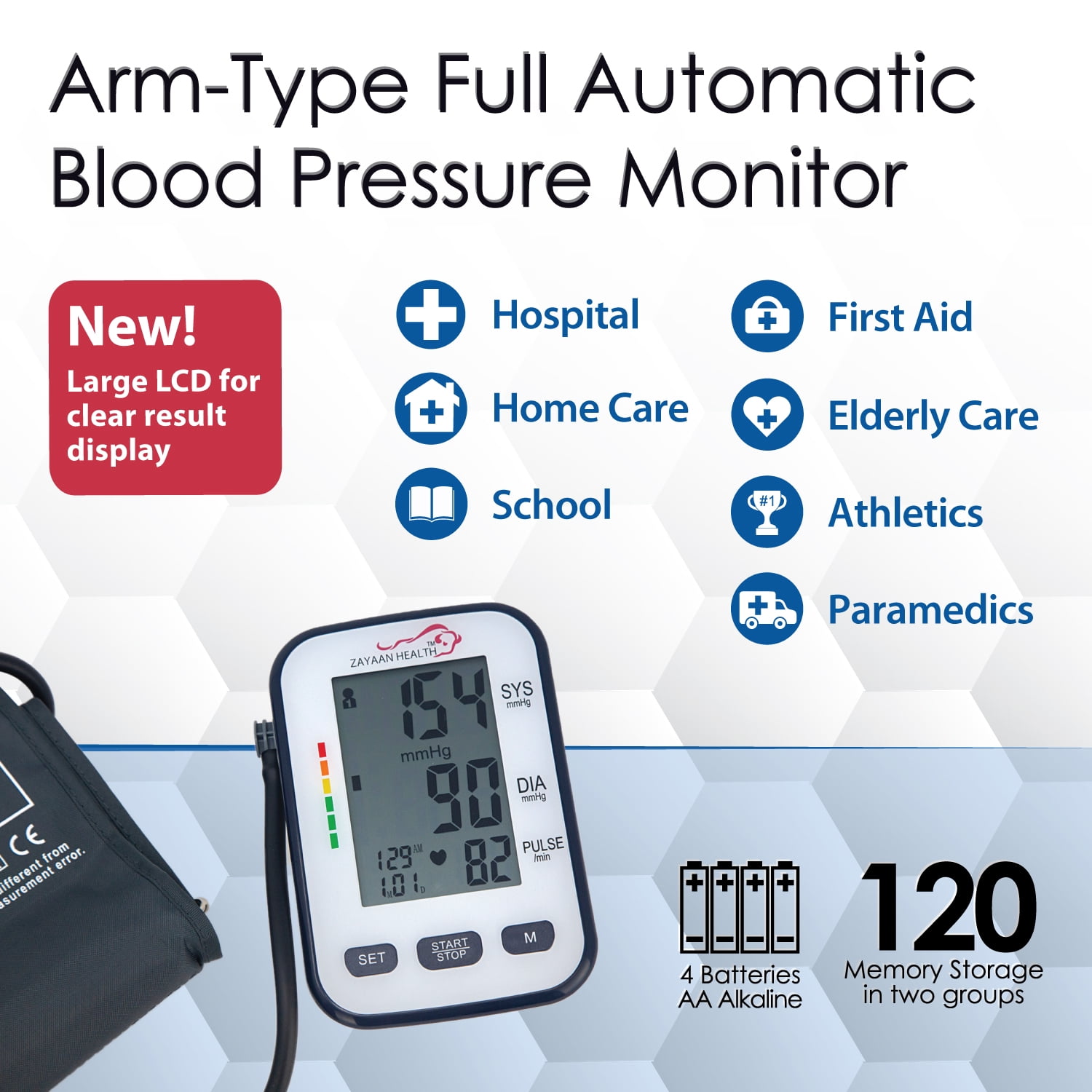 - ZAYAAN HEALTH Arm-type Fully Automatic Blood Pressure Monitor, White with Blue Trim