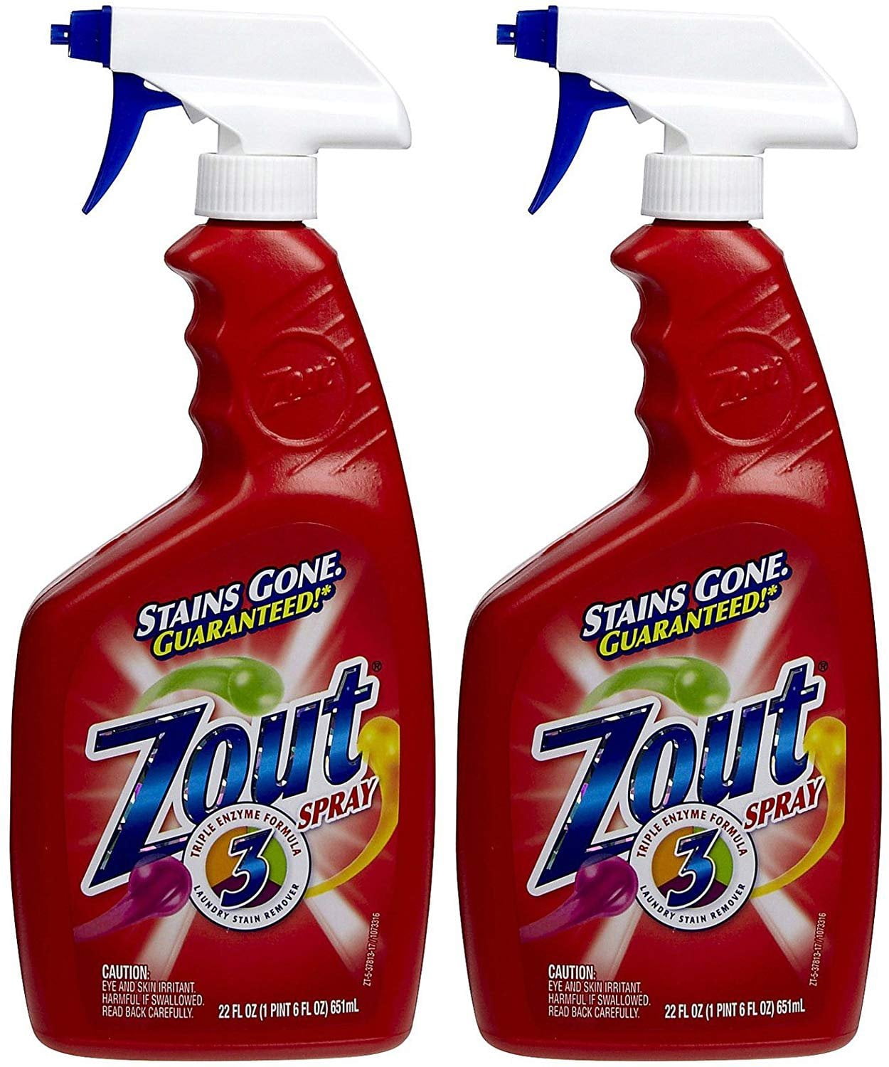 The Dial Zout spray stain remover can be used to treat stains including, but not limited to grass, ground-in dirt, and blood. It also removes food stains such as tomato juice, barbeque sauce, salad dressing, and margarine. This remover is used by saturating the stain with the spray, working the formula into the stained fabric, waiting five minutes, and then washing the fabric.