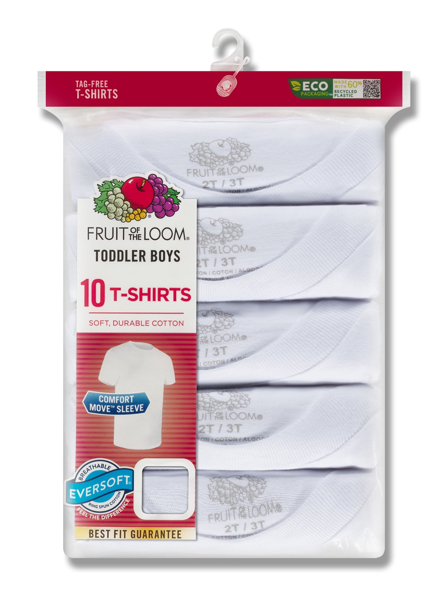 Fruit of the Loom Toddler Boy EverSoft Crew Undershirts, 10 Pack, Sizes 2T-5T