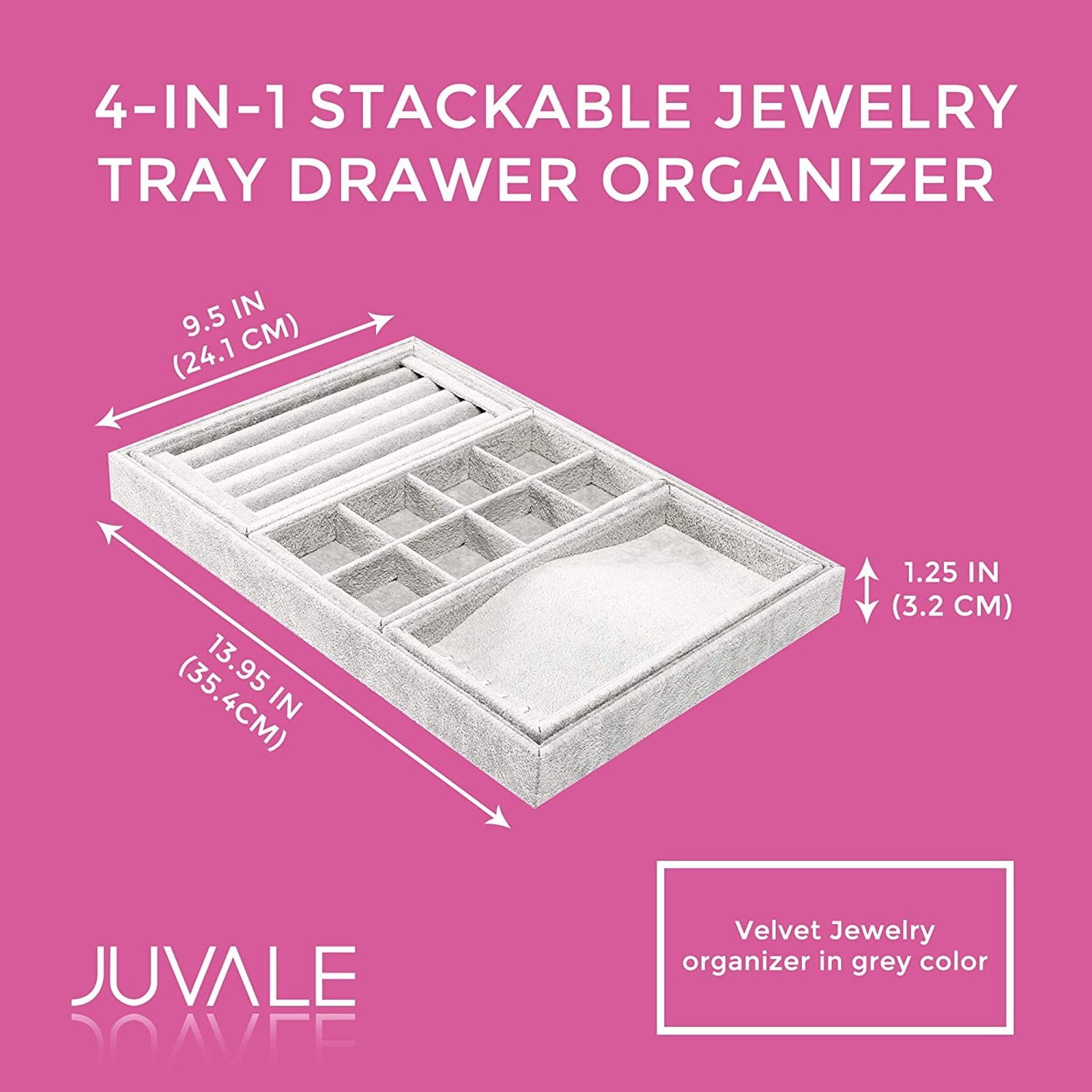 4 in 1 Draw Organizer Stackable Jewelry Organizer Tray (13.75×9.5×1.25 in)