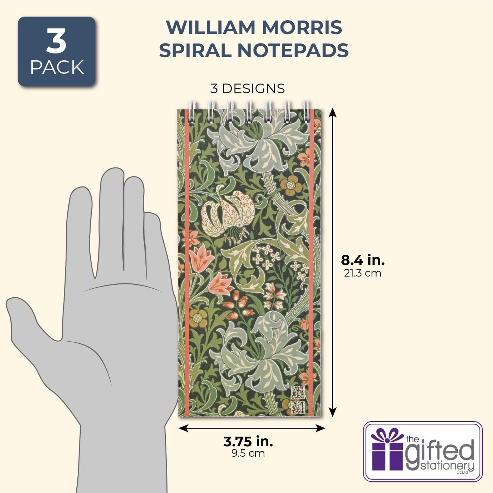 3-Pack Long Spiral Notepads, Hard Cover Note Pads, William Morris Inspired, 8.4 x 3.75
