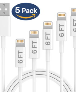 iPhone Charger Lightning Cable, Ixir, MFI Certified 5 Pack 6FT USB Cable, For Apple iPhone Xs,Xs Max,XR,X,8,8 Plus,7,7 Plus,6S,6S Plus,iPad Air,Mini/iPod Touch/Case, Charging & Syncing Cord