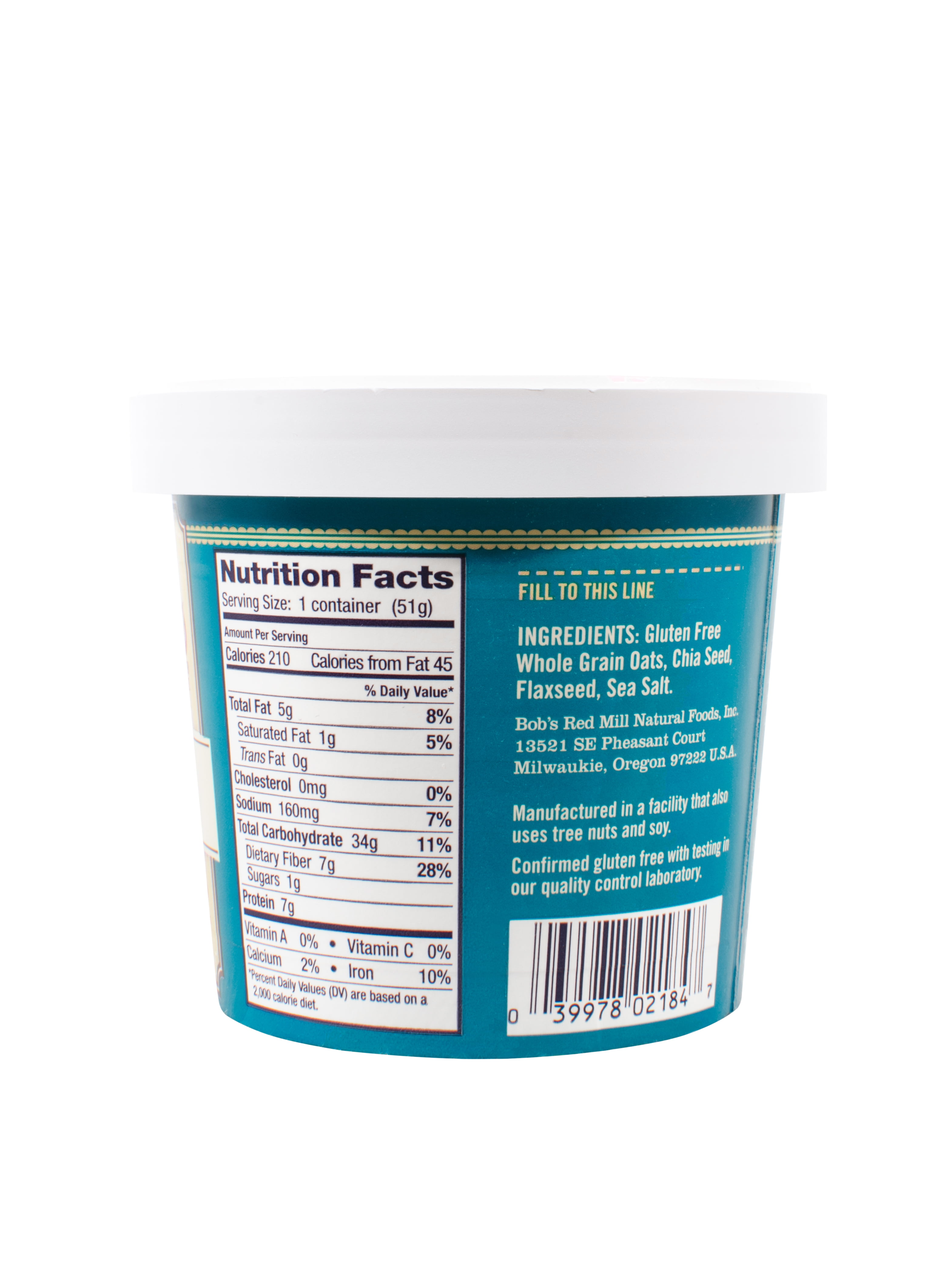 Bob’s Red Mill Gluten Free Oatmeal Cup, Classic With Flax/Chia, 1.81 Oz (Pack of 12)