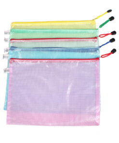 Zipper Closure Assorted Color Plastic A4 Size Paper File Holder Bag 5pcs