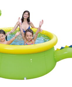 Sunclub 3D Dinosaur 69′ x 24.5′ Green Round Inflatable Swimming Pool for Kids with Fun Character Spray Feature