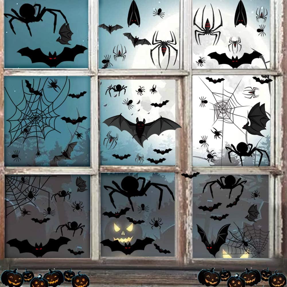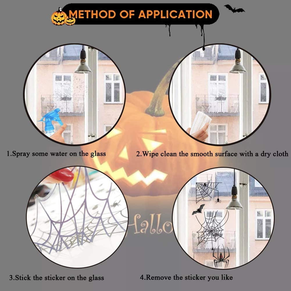 Spooky Halloween Window Cling: Come with 113pcs Halloween window clings with the spider, spider webs, bat in total 4 sheets, it is an interesting way to add the spooky decor in your house this Halloween.
