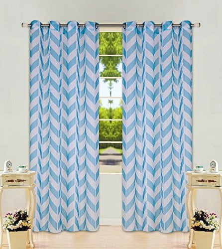 2 Panel Chevron Turquoise Two-Tone Pattern Design Voile Sheer Window Curtain 8 Silver Grommets 55′ W X 95′