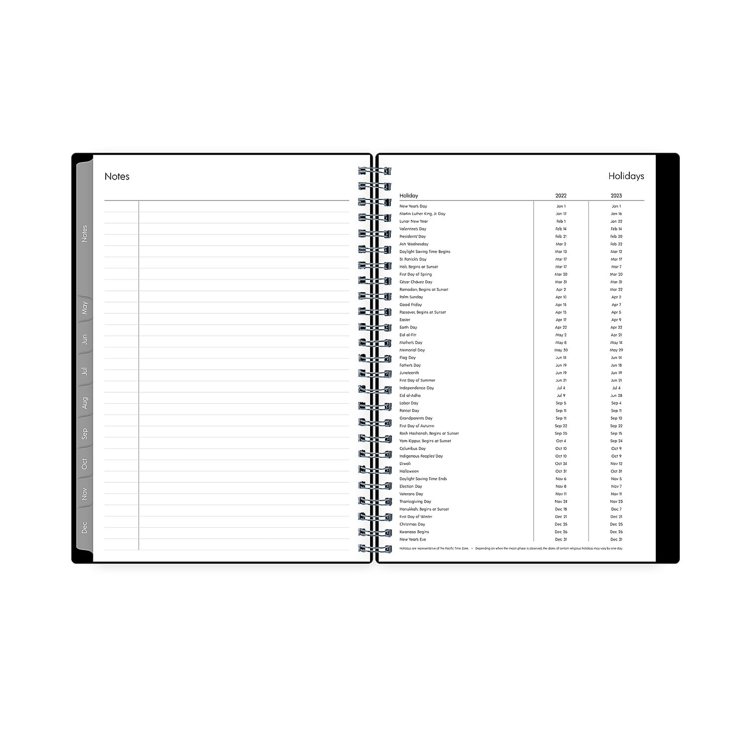The all-in-one 2023 Blue Sky weekly and monthly planner has a built-in notebook for use at work, home, or in meetings. This professional planner provides lined horizontal weekly layouts, tabbed monthly views, and 30 pages for notes to use for feedback and ideas. With a flexible cover in solid black and durable twin-wire binding, this compact planner is a convenient addition to your work routine. All-in-one 2023 planner with a built-in notebook for use at work, home, or in meetings. Dimensions: 5.88"" x 8.63"". Weekly and monthly planning calendar covers a 12-month date range from January 2023 to December 2023. Two-page weekly and monthly calendar spreads offer extra writing space. Flexible cover is solid black. Includes 30 lined pages for notes. Durable twin-wire binding in a silver color. Sold as 1 Each.