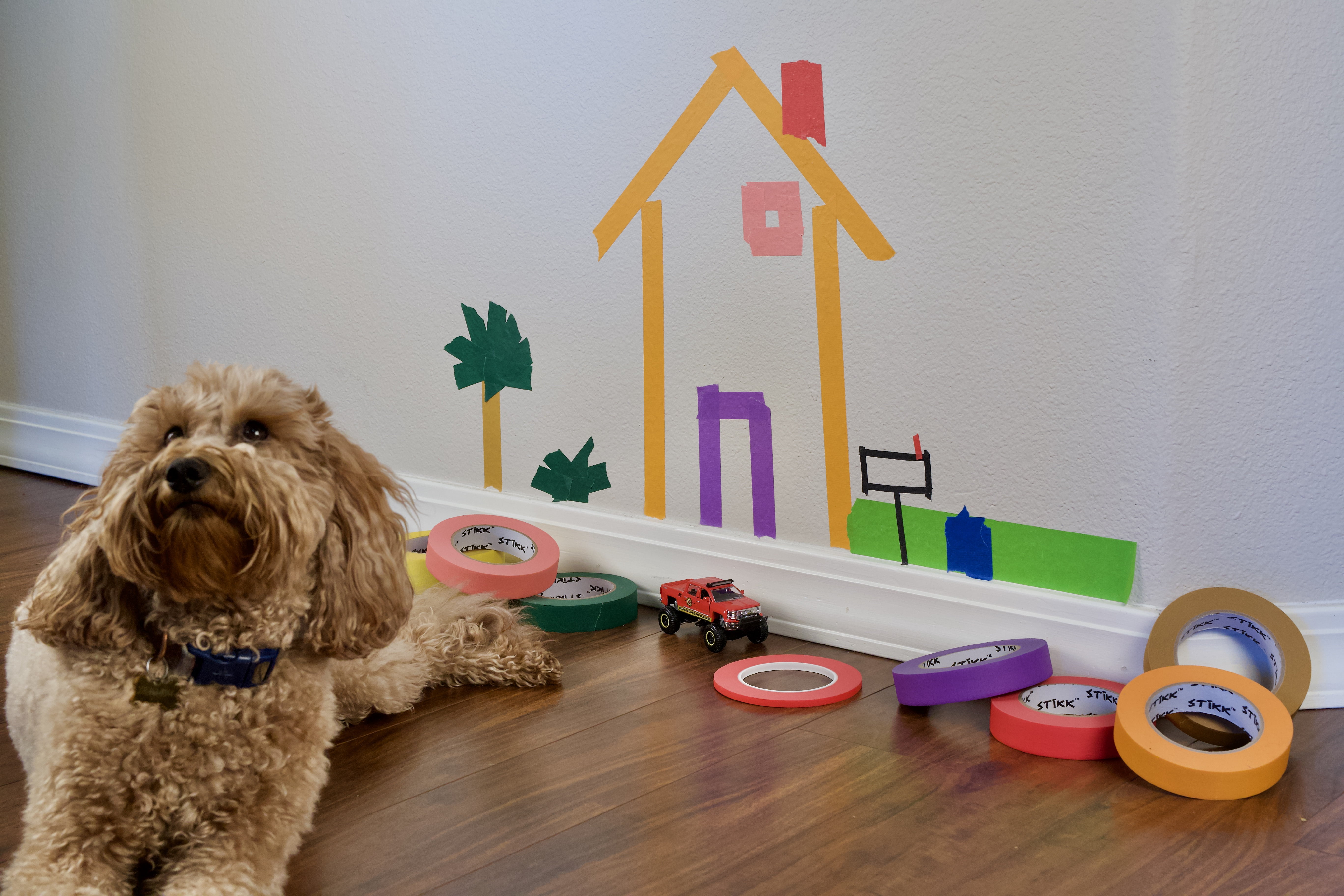- Adheres quickly and easily to a painted walls, trim, wallpaper, glass and wood