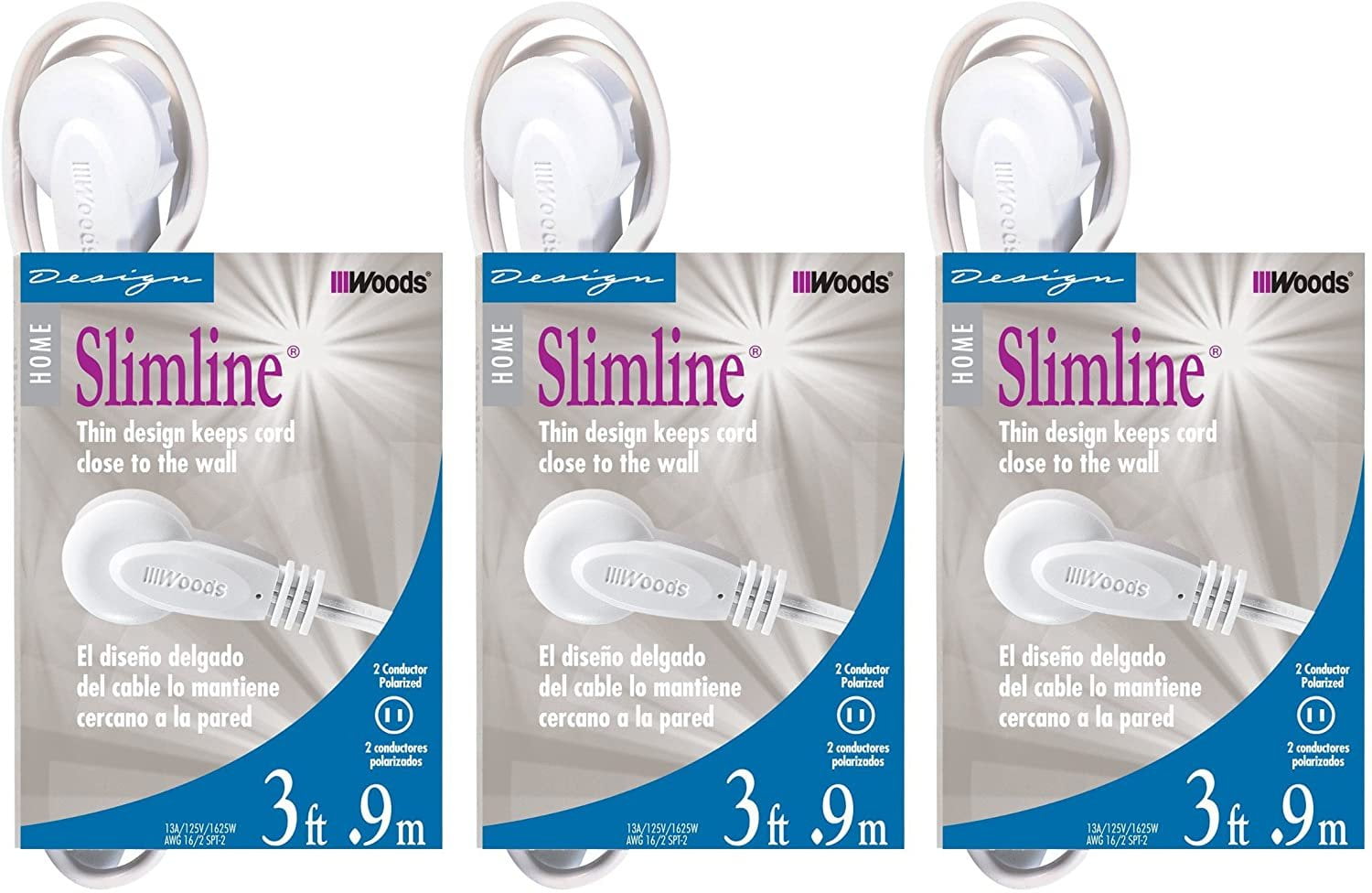 3-PACK SlimLine 22353-PACK – SlimLine 2235 Flat Plug Extension Cord, 2-Wire, White, 3-Foot