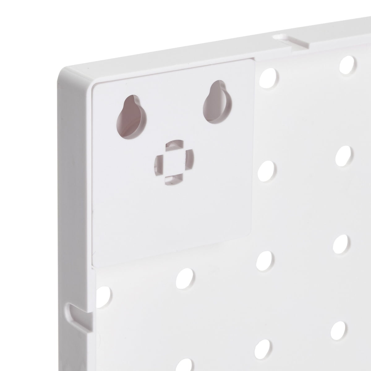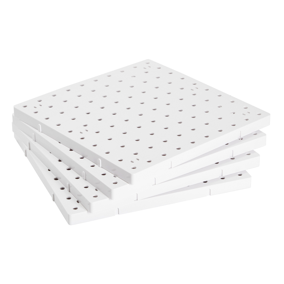 Use these peg boards for walls in your garage, kitchen, or backyard to organize your utensils and tools. This 4 pack pegboard kit measures at 10 x 10 inches, and all 4 pegboards can be combined to create one large 19.5 x 19.5-inch pegboard! Easily install each pegboard wall organizer with the sticky mounting brackets or with the included screws. Works with 1/8 and 1/4 inch peg hooks