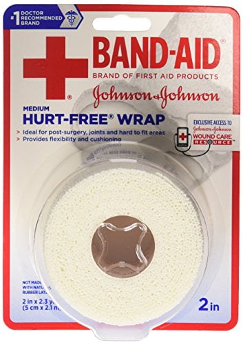Johnson and Johnson BAND-AID Brand of First Aid Products HURT-FREE Wrap firmly secures dressings to wounds, but it doesn’t hurt when removed. That’s because HURT-FREE Wrap is specially designed to stick to itself, not to skin or hair. This wrap is not made with natural rubber latex. It won’t irritate your skin or leave a sticky residue. Avoid wrapping too tightly, which can hinder circulation. Kling design secures to itself to stay in place. Soft and cushioning. Ideal for frequent dressing changes.Johnson and Johnson BAND-AID Brand of First Aid Products HURT-FREE Wrap firmly secures dressings to wounds, but it doesn’t hurt when removed. That’s because HURT-FREE Wrap is specially designed to stick to itself, not to skin or hair. This wrap is not made with natural rubber latex. It won’t irritate your skin or leave a sticky residue. Avoid wrapping too tightly, which can hinder circulation. Kling design secures to itself to stay in place. Soft and cushioning. Ideal for frequent dressing changes.