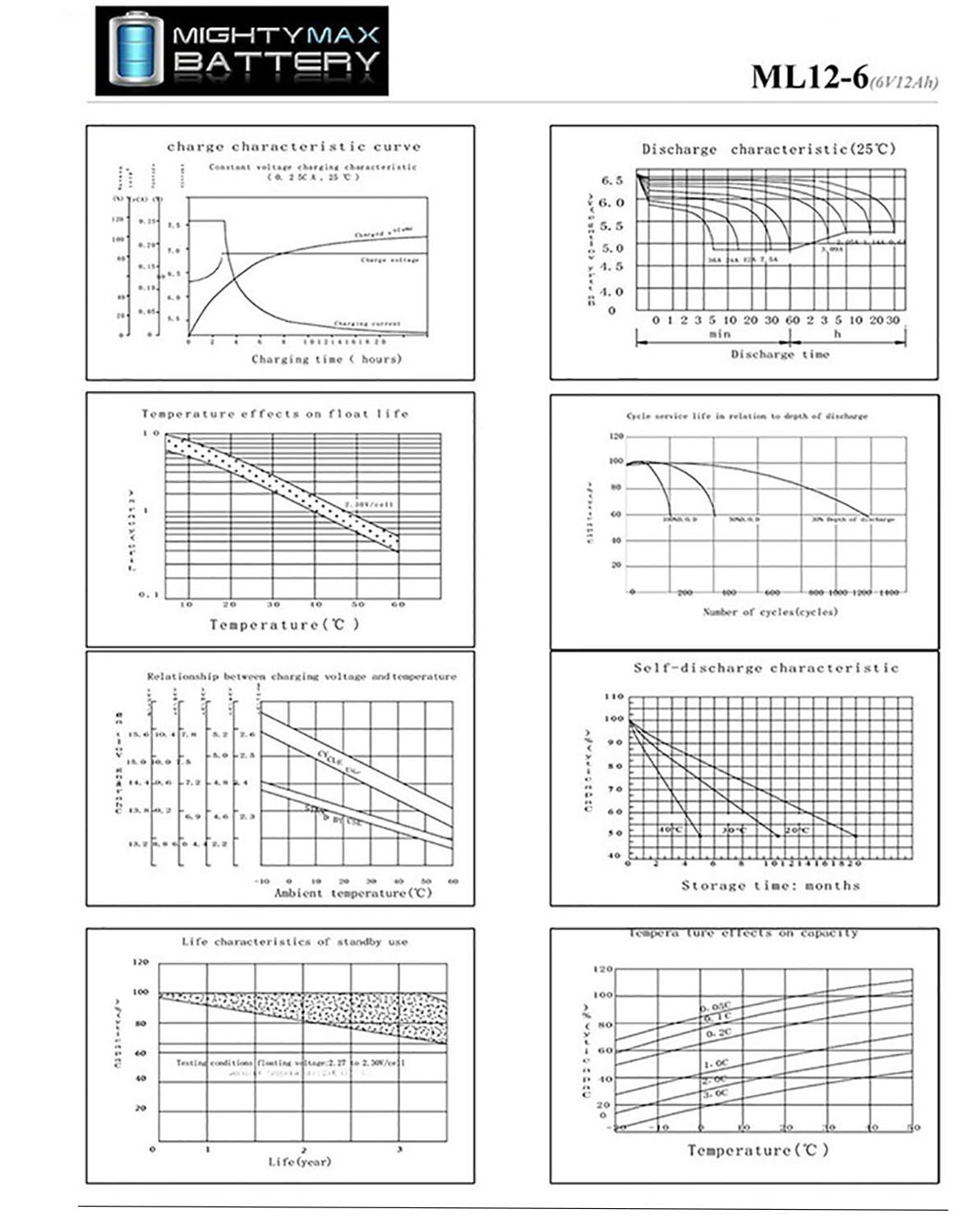 Delivering power when you need it, the Mighty Max ML12-6F2 6 Volt 12 AH uses a state of the art, heavy-duty, calcium-alloy grid that provides exceptional performance and service life in both float and cyclic applications.
