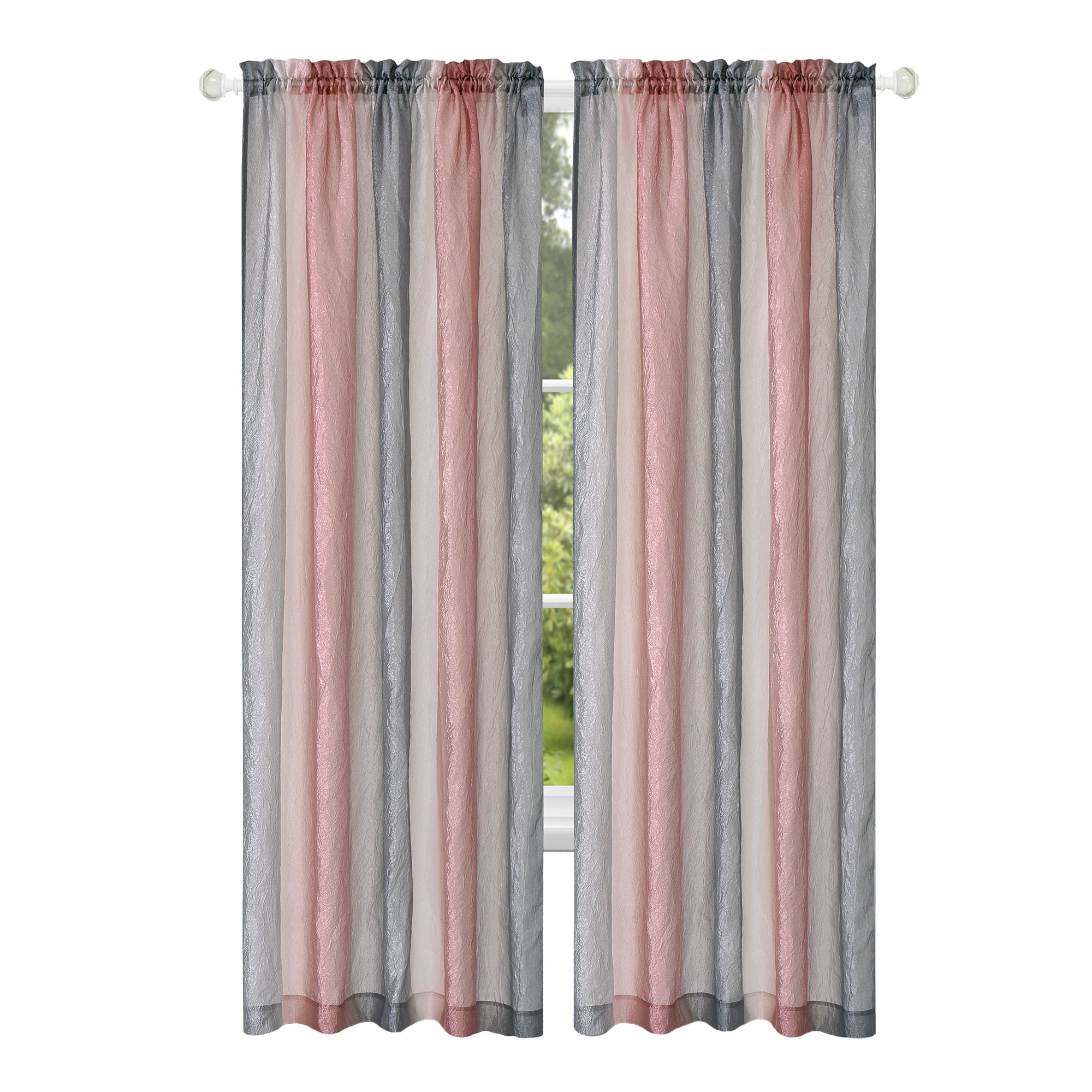 The Achim Ombre Tailored window curtain panel features an array of color, creating a rainbow design. Add privacy to your home while also giving it colorful vibes! This product can be combined with a scarf, tie up shade, and waterfall valance. (Which are all sold separately)