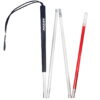 The Ambutech Aluminum 6-Section Folding Cane with Slip-On White Rolling Ball Tip offers durable and comfortable mobility. Lightweight and easy to maneuver, it provides great sensitivity and visibility. It easily handles road obstacles and pavement cracks and is ideal for the constant contact technique. Heavy-gauge aluminum construction provides strong joints and the ability to withstand considerable abuse. New joint design provides superior tactile transmission. Cane folds and unfolds with ease. Double elastic cord assembly for added security. Straight handle with flat-sided grip. White reflective tape with a six-inch red stripe. Slip-on style 2" diameter rolling ball tip with encased stainless steel roller bearing.