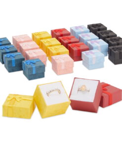- Box multipack features 4 boxes with fun and festive designs. Box designs include gold box with gold glitter polka dots, silver box with silver stripes, red box with red glitter diagonal stripes and a green box with green glitter polka dots.