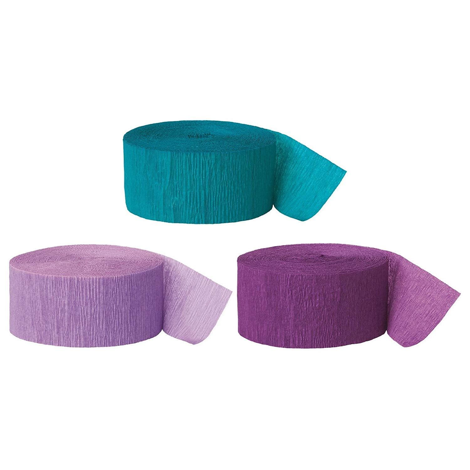 Andaz Press Crepe Paper Streamer Hanging Party Decorations Kit, 240-Feet, Aqua Teal, Lavender, Royal Purple, 1-Pack