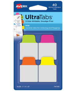 Give your planner, notebook, school and work supplies an upgrade with the Avery Ultra Tabs Luxe Collection with glittering pastel shimmer designs. The unique purple, green, blue and orange pastel materials are dappled with gold glitter to create a speckled effect that shines in attractive waves of light. Elegant and chic, the Luxe Collection provides a choice array of products that are certain to bring a premium touch to any kind of project. Every margin sticky tab features a sturdy 1.75" x .5" tab and a 2.5" x .5" adhesive body. The glittering design is applied on both sides of the tab for easier visibility from any angle. Both the clear body and the tab can be written on with permanent markers such as Marks-A-Lot markers as well as most pens, pencils and highlighters. The transparent tab body features a smudge-free surface for writing but drying time can vary depending on the ink used. The other side of the tab body uses a repositionable adhesive to make sure the tab stays put while also making them easy to peel to avoid damage to the applied surface and leftover residue. Paired with the sturdy tab material, the repositionable adhesive allows for easy reusability across multiple projects.