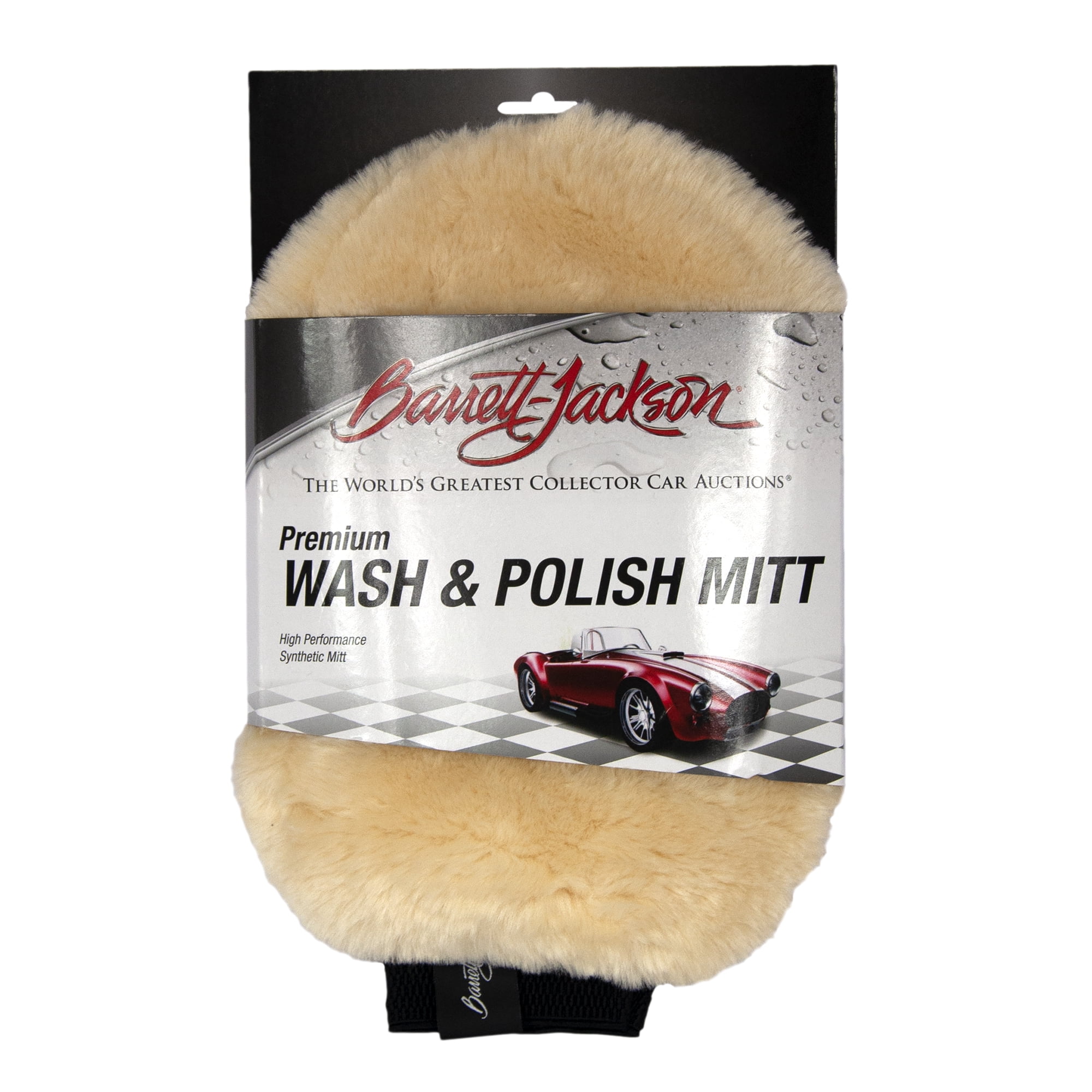 Luxurious Barrett-Jackson Wash & Polish Mitt – used for an enhanced automotive detailing experience. Plush and soft faux sheepskin fur is premium synthetic material that washes away dirt and grime with ease yet doesn’t damage your vehicle’s paint or finish. Made with scratch-resistant material with automotive lovers in mind. Use on the outside of your vehicle or the inside to clean dashboards, seats, screens, and more. Gentle elastic cuff around the wrist ensures that the mitt stays in place and does its job. Use on cars, motorcycles, RVs, boats, airplanes, and more.