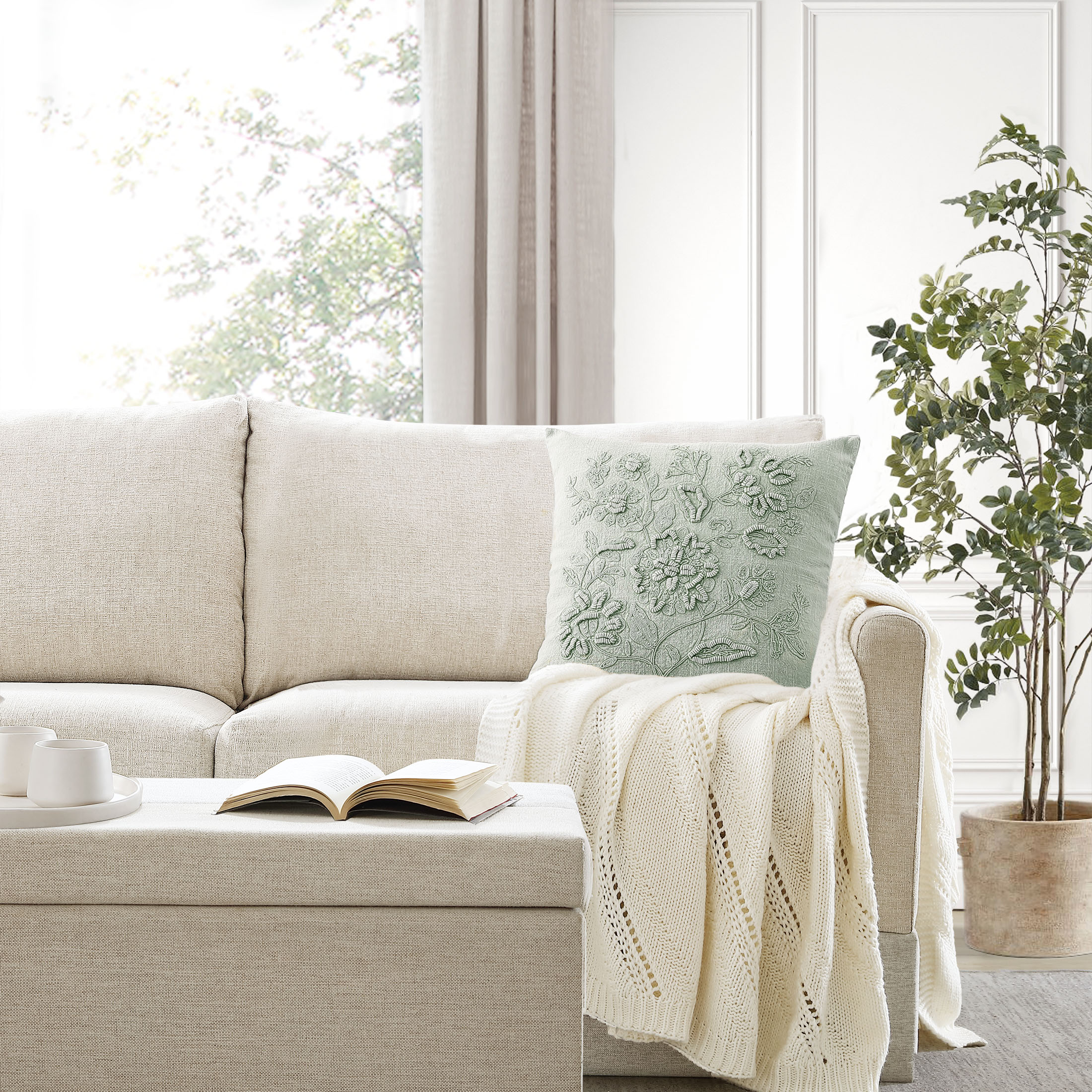 Add a welcoming touch to your decor with the new Better Homes & Gardens Tonal Floral pillow! This sage color accents any room with a wash of color! This 20” x 20” pillow is made with multiple techniques and durable fabric. The pillow is filled with down alternative, and cleans easily with spot care. This pillow is a great pairing with other pillows in different shapes and sizes, and perfect to pair with other Better Homes & Gardens pillows! Decorate your home with a special look today!