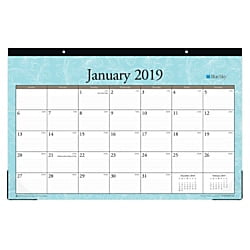 Place this large calendar on your desk to have a full view of upcoming events whenever you need. An entire month is shown on each page, and the paperboard backing makes a sturdy writing surface. 1 page per month. 12 months: January to December. Paperboard backing is sturdy and easy to write on. Includes a reference calendar and a notes section.Blue Sky™ Monthly Desk Pad Calendar, 17" x 11", Knightsbridge, January to December 2019