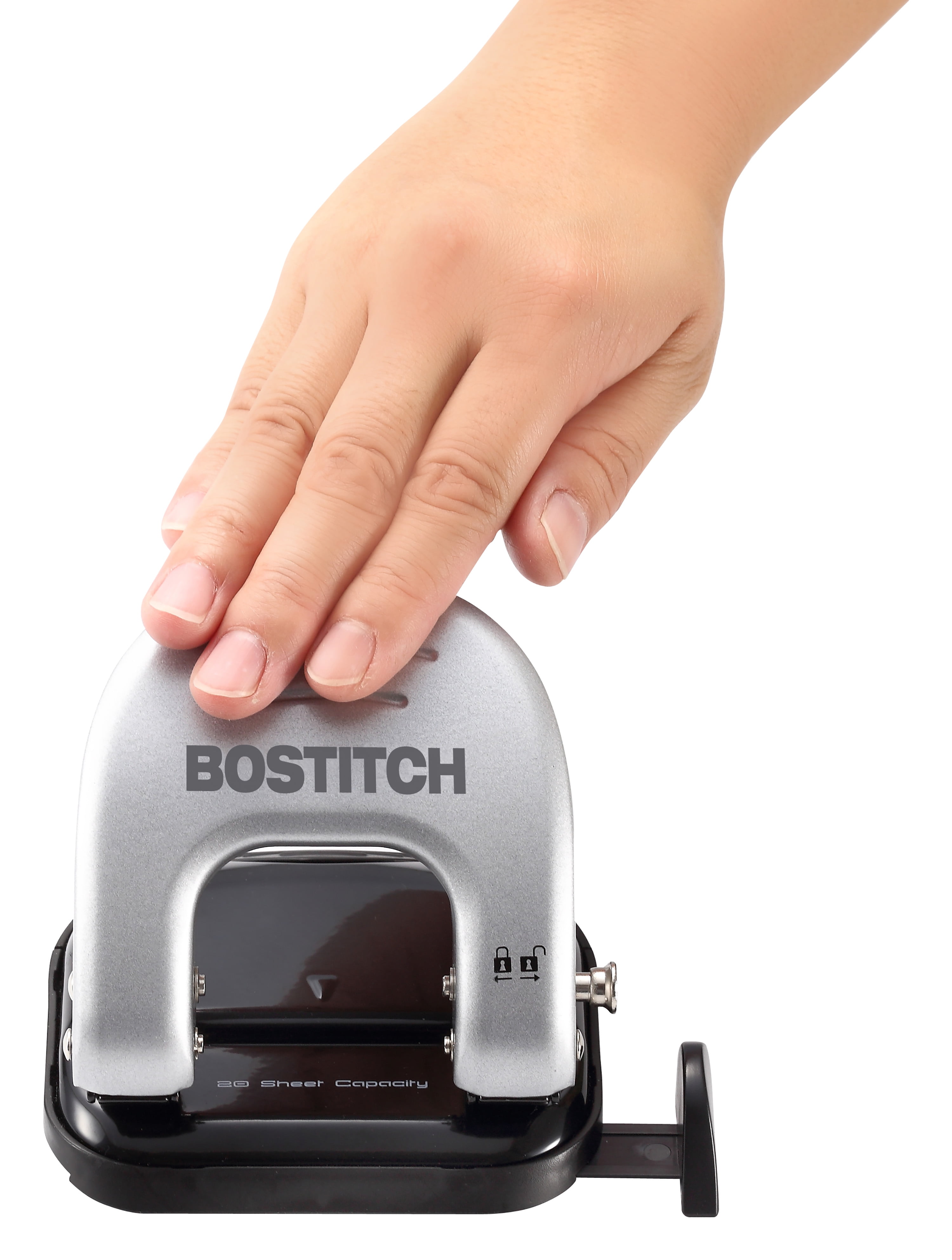 With this Bostitch three-hole punch PaperPro technology, easily three-hole punch up to 20 sheets, jam-free. Designed with sleek, comfortable curves and a durable all-metal design for long-lasting performance. To ensure consistent hole placement, the punch has an integrated paper guide and ruler. For maintaining a clean work environment, the base holds the chip waste and can be emptied through the flip-open door. Ideal for the home, office or school, this hole puncher is the perfect tool for any setting.